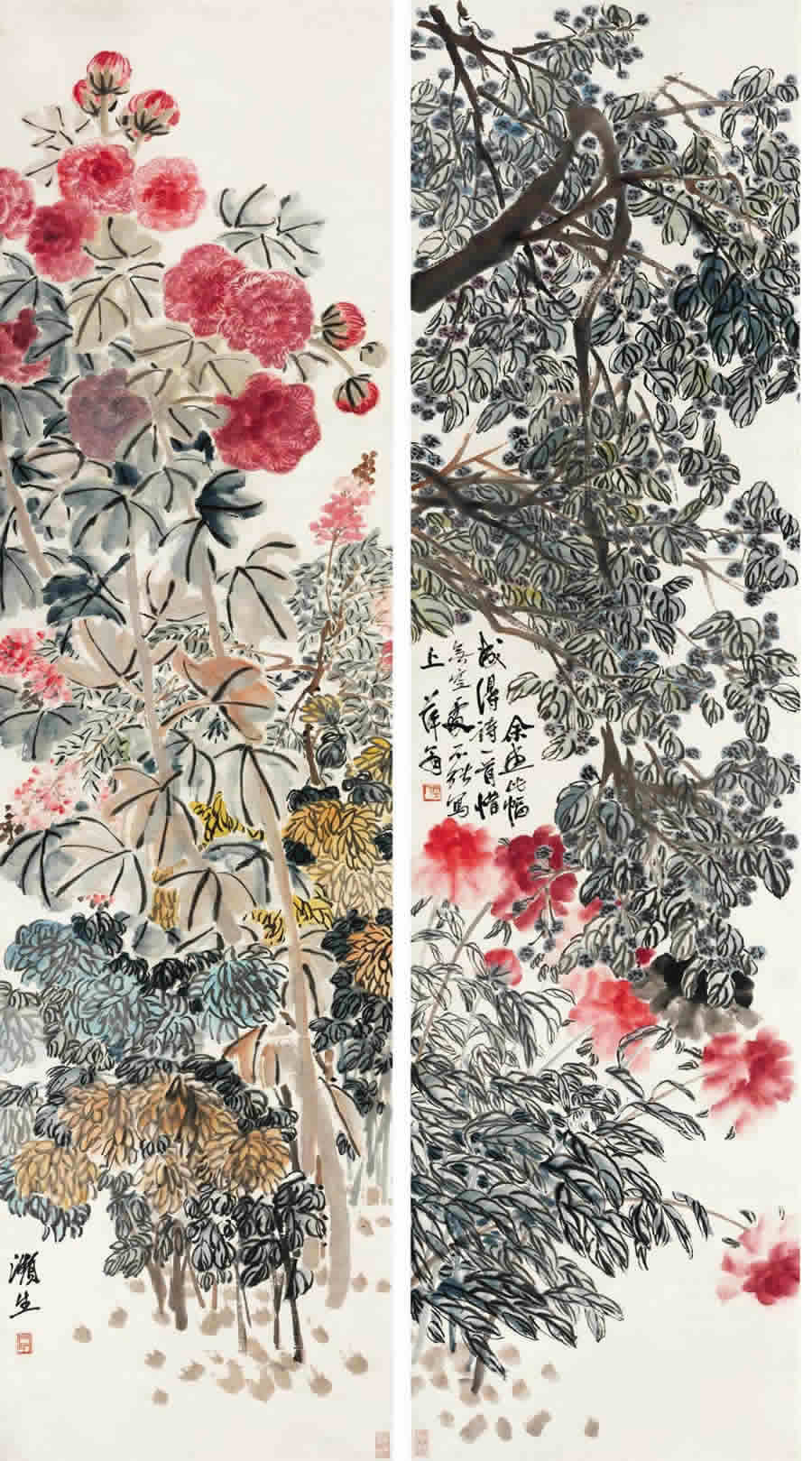 第四屏是娇嫩的芙蓉和金菊。落款:濒生。