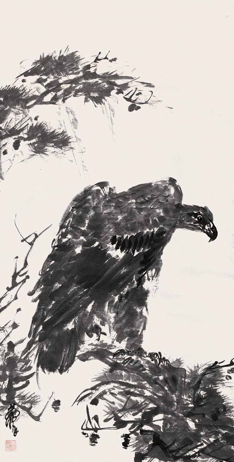 △黄胄 松鹰图 138×69cm