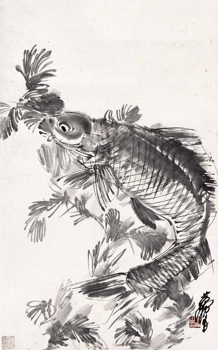 △黄胄 1982年作 鱼跃 67.8×44.7cm