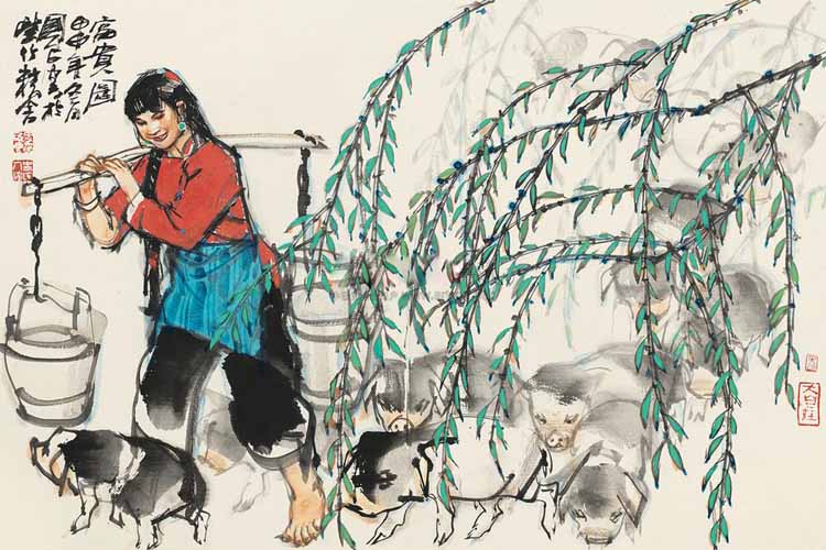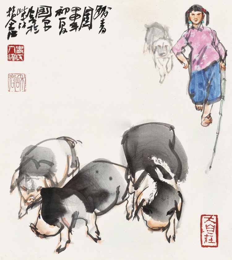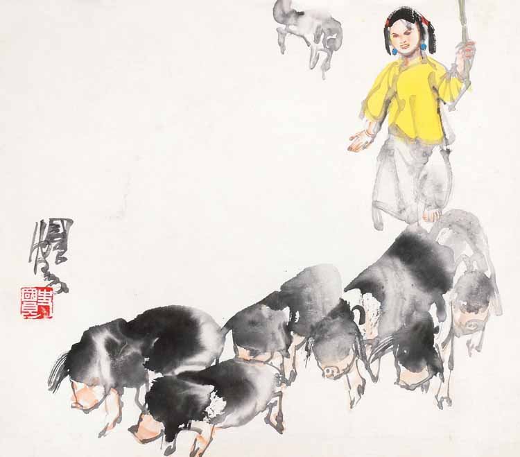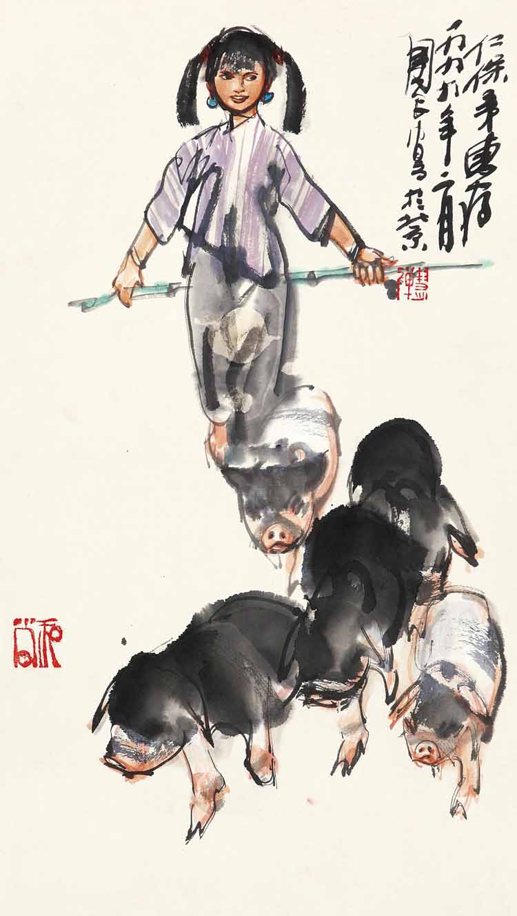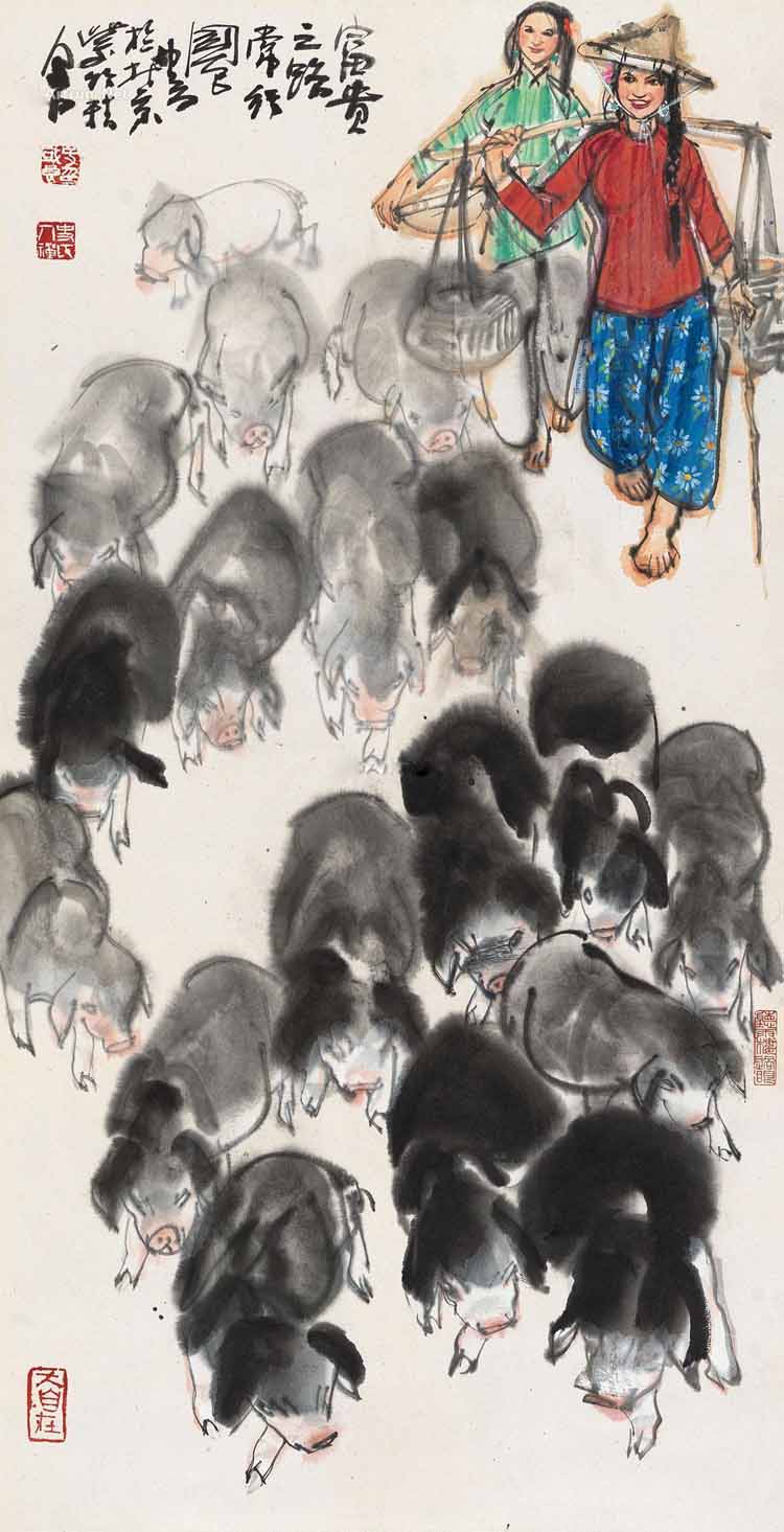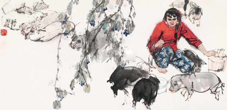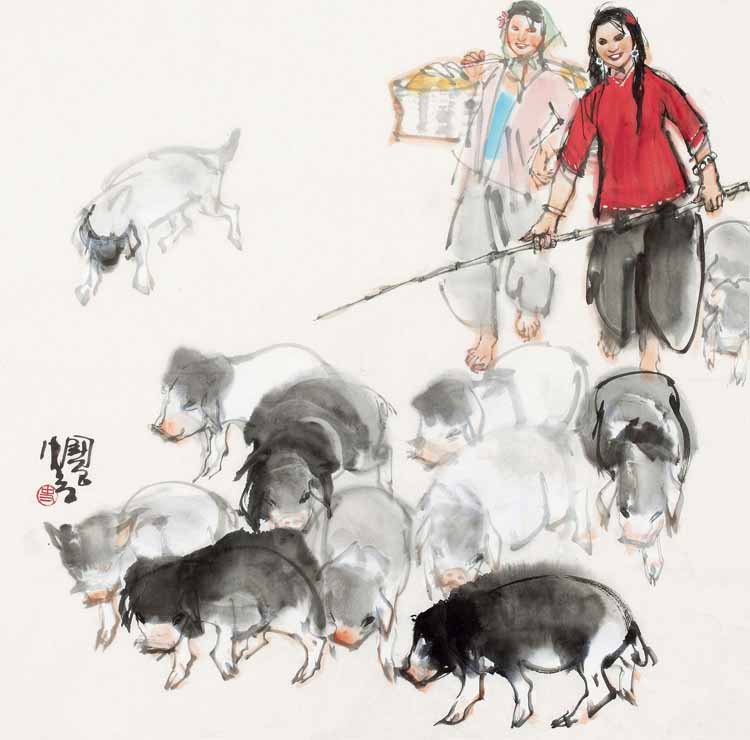 史国良一生画过许多关于猪的作品,毕业设计就曾画过一幅《买猪图》,同时也一直钟情于画猪。史国良画猪作品欣赏: