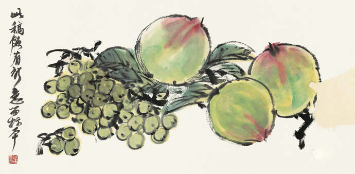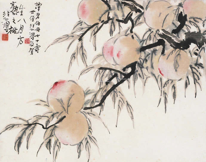 10、徐悲鸿(1895-1953)画寿桃