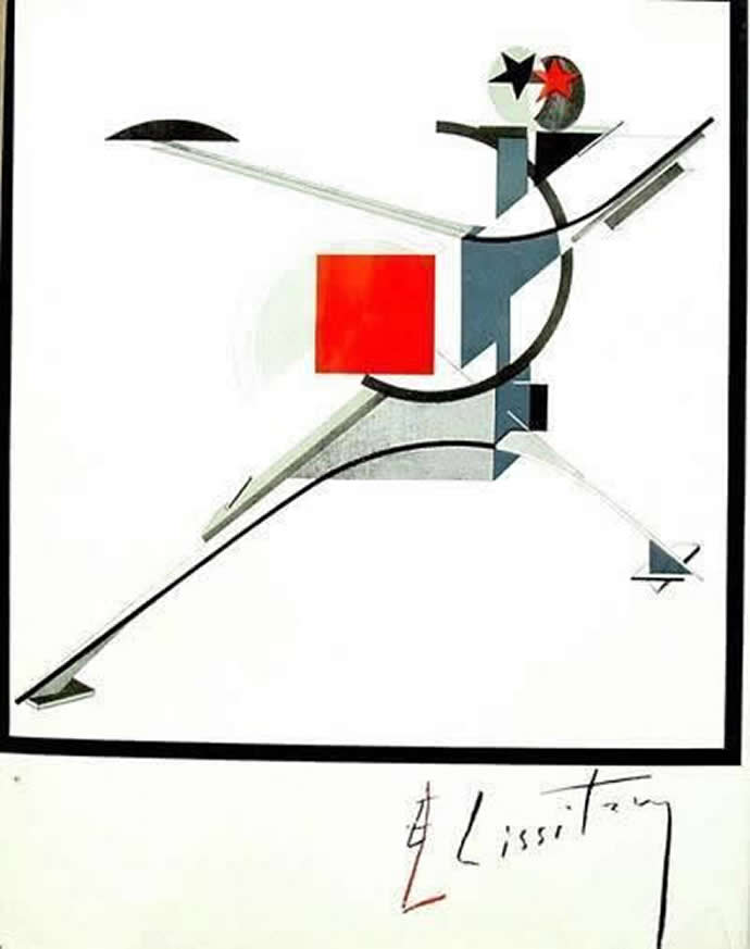 利西茨基,(1890—1956)是俄国前卫艺术家,抽象观念传播的重要桥梁。他生于斯摩梭斯克,1909—1914年在德国塔姆施塔特技校学习工程技术,取得工程师证书。回到俄国后,他投身到艺术中,曾受到马列维奇的至上主义、罗德琴柯的非客观主义及塔特林的构成主义的影响。他大约在1919年加入构成主义行列。