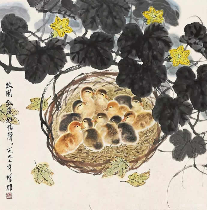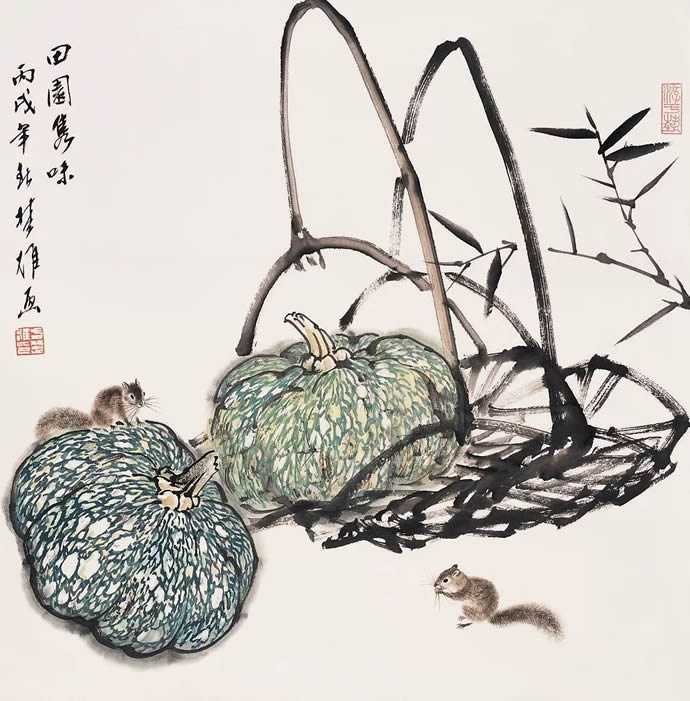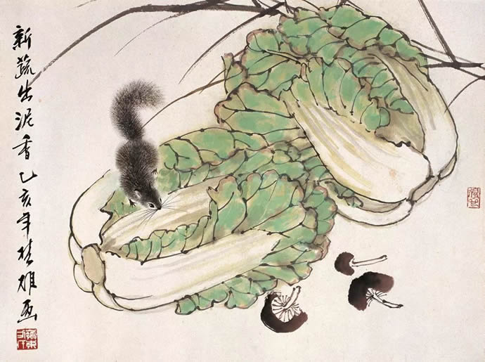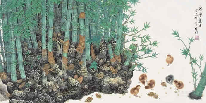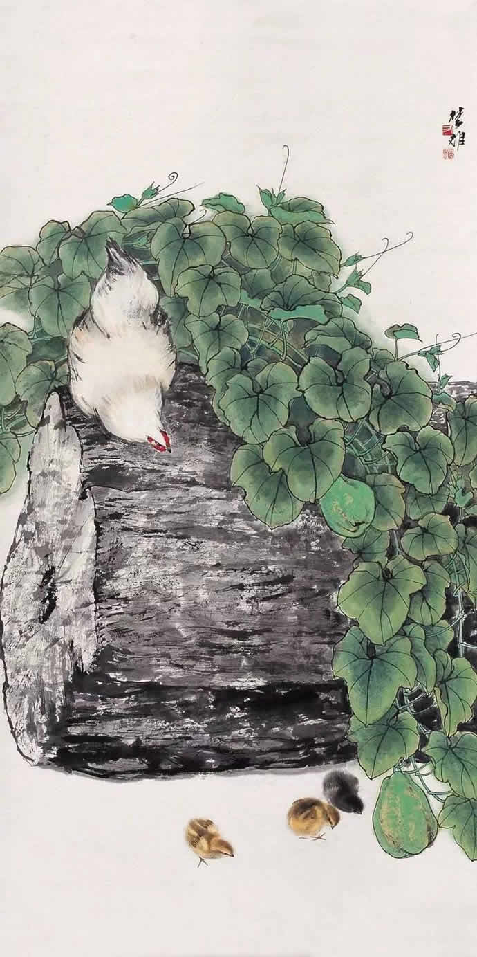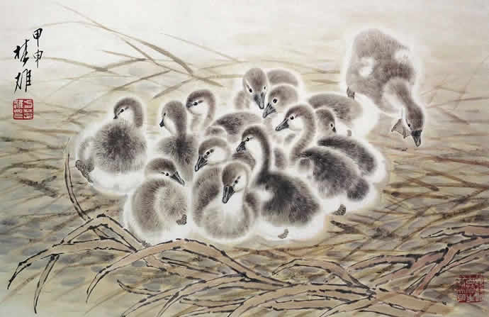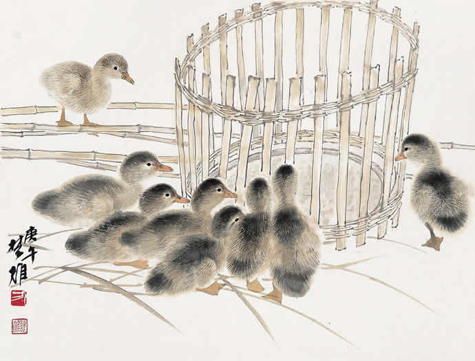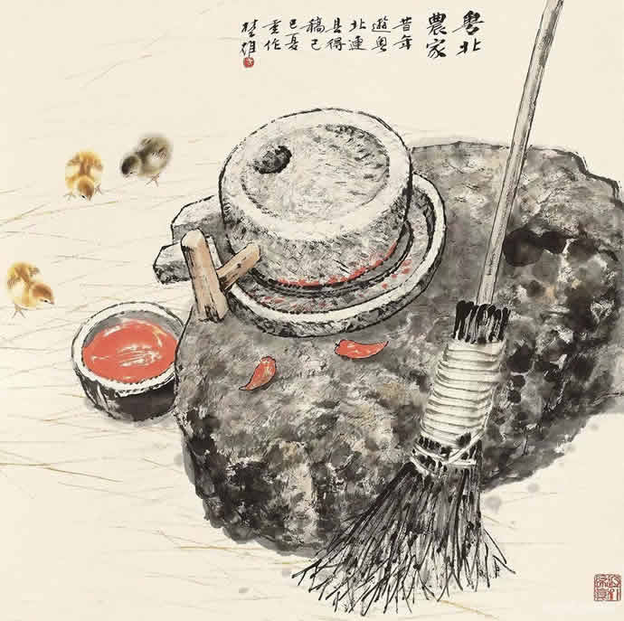 动物方面很有表现余地,乡土题材方面也是。以前珠三角的水乡河涌很美。现在渐渐没有以前的诗意了。但大家都很怀念那种田园的朴素的本真的意境。我很喜欢,也一直在追求这种题材和情调。传统文人画里就缺少一点。到齐白石才有一点乡土味,他把乡土的东西画到文人画里面,赋予它很高的一种情趣,在这方面他是空前的。花鸟画以前多表现文人自命清高的东西,到齐这里已经很入世了。他以朴素的农民心态看世界。我觉得花鸟画里就乡土气息这块也有很多余地去探索。