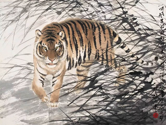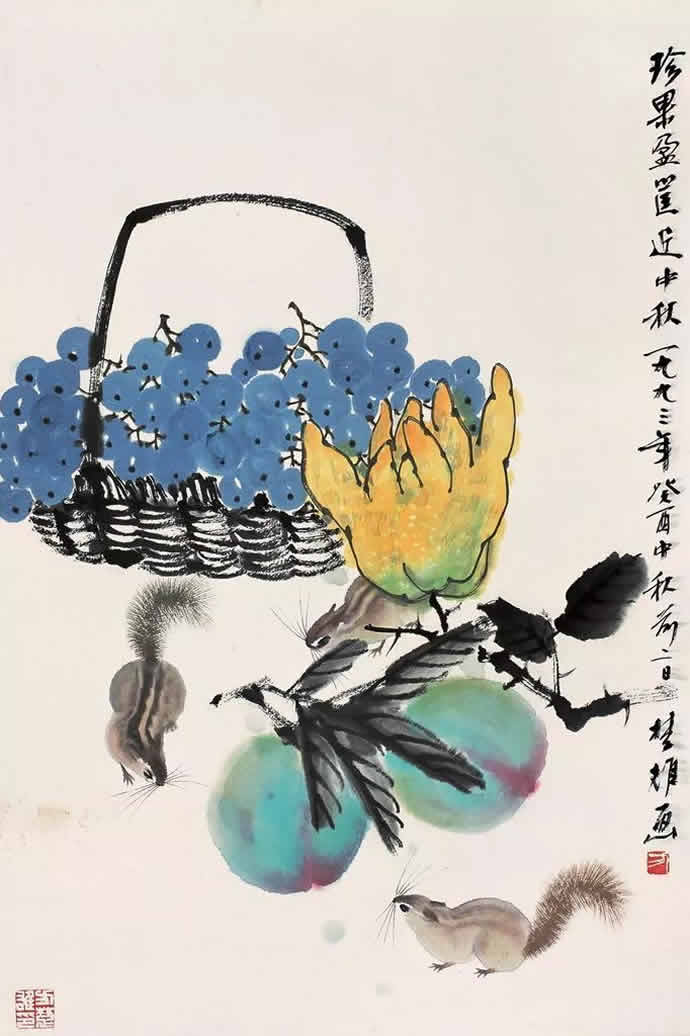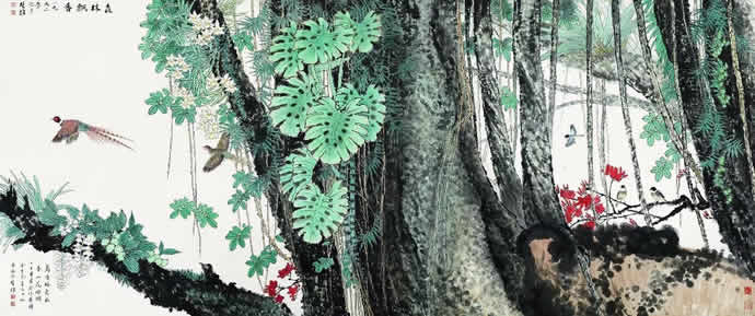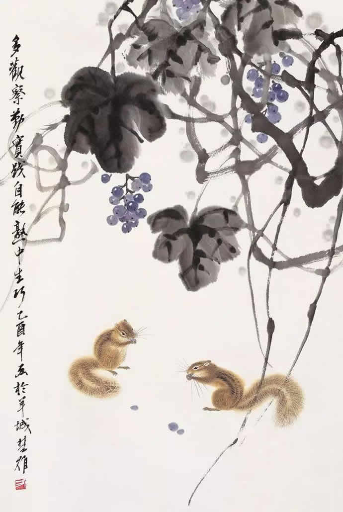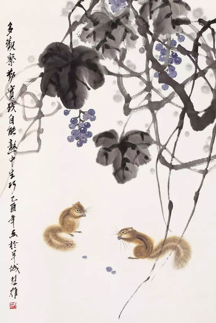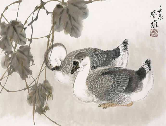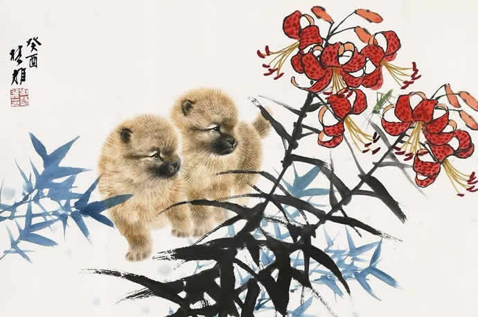 动物方面很有表现余地,乡土题材方面也是。以前珠三角的水乡河涌很美。现在渐渐没有以前的诗意了。但大家都很怀念那种田园的朴素的本真的意境。我很喜欢,也一直在追求这种题材和情调。传统文人画里就缺少一点。到齐白石才有一点乡土味,他把乡土的东西画到文人画里面,赋予它很高的一种情趣,在这方面他是空前的。花鸟画以前多表现文人自命清高的东西,到齐这里已经很入世了。他以朴素的农民心态看世界。我觉得花鸟画里就乡土气息这块也有很多余地去探索。