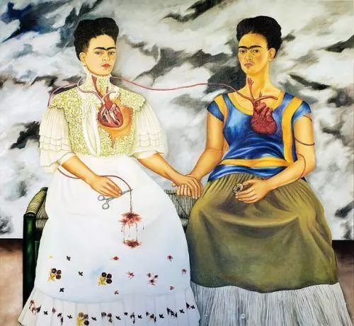 卡罗的作品有时带有超现实的色彩,有时又像上图《两个卡罗》中所表现的,画中主人公虽然两只手牵在一起却眼神淡漠无交流,艺术家试图通过这样的表现形式,来表达自己内心无法述说的真实情感。