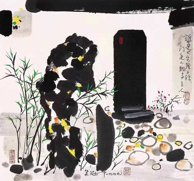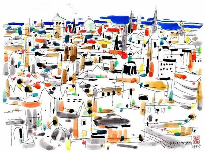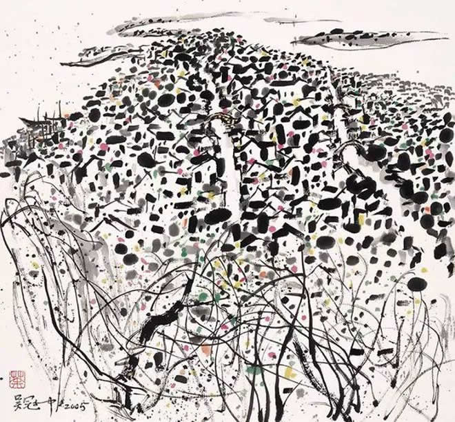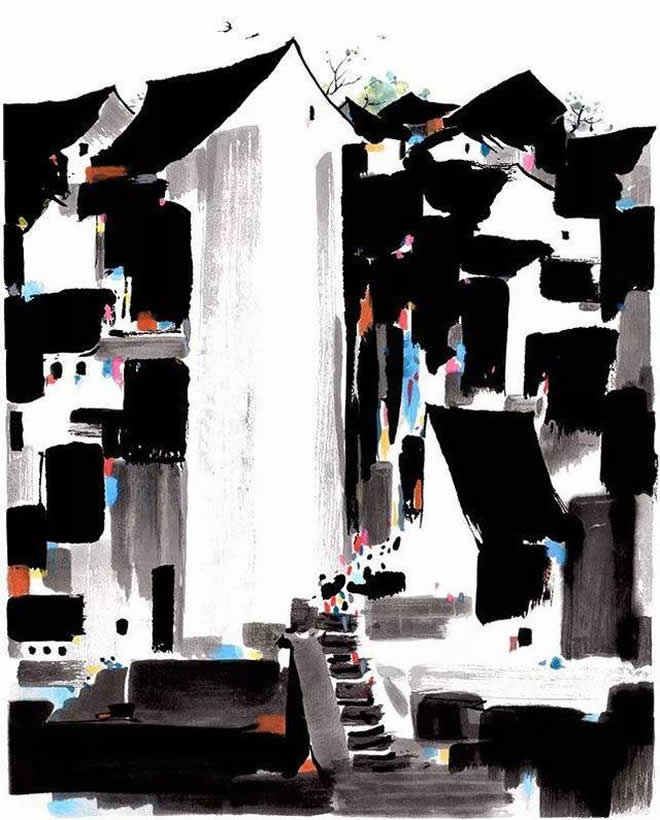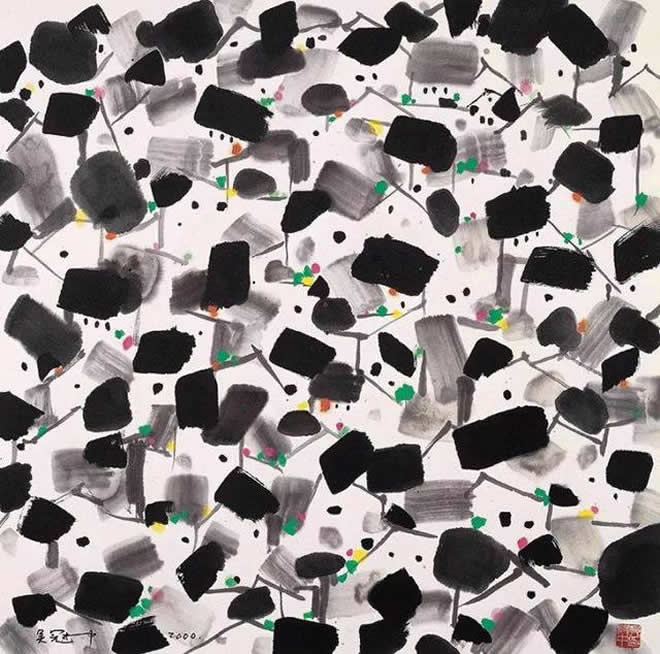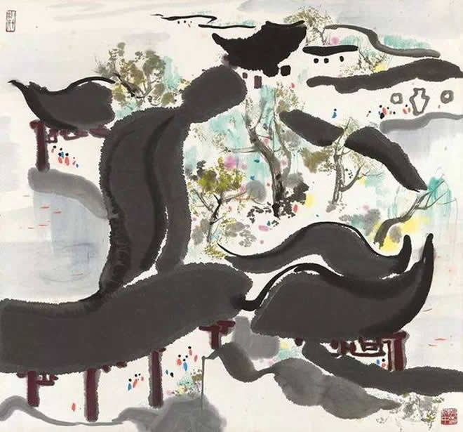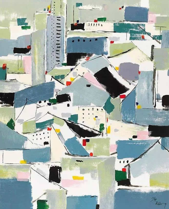 看到这里相信你一定能看懂吴冠中笔下的抽象画了,只要是他的抽象画,你就把黑色想象成房顶,红绿想象成树木和花草,就会让你明了很多了。其他画家的抽象作品也可以以此类推,翻阅他们之前的作品,就能推导出他们抽象画的内容了。