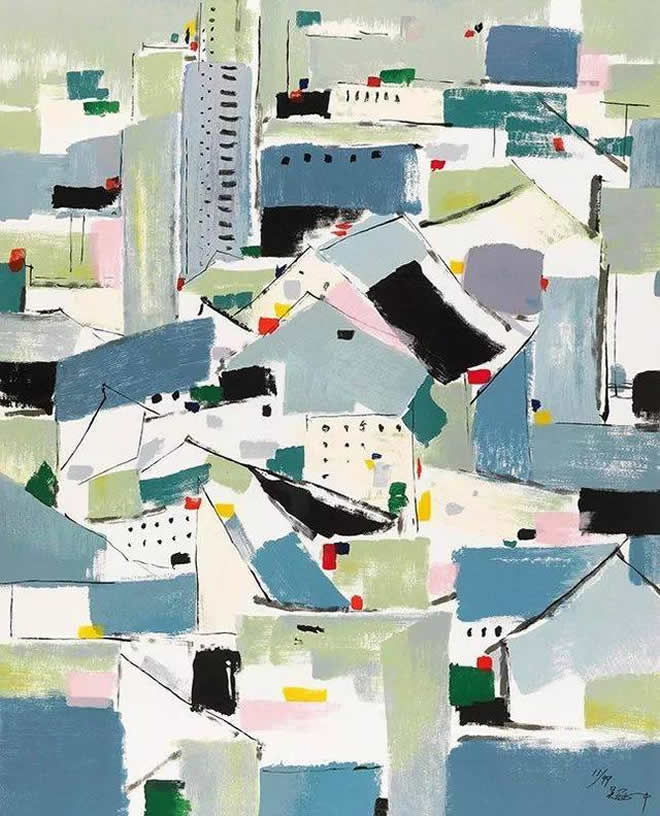 最后到了晚期,我们以及无法控制吴冠中对房子的描绘了,如果跳过前两个阶段看晚期作品,一定会把你看蒙。