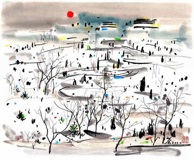今天名人字画网小编拿吴冠中的作品举例子,来给大家解读如何去看懂一幅抽象画。在吴冠中后期的作品中(见下图),有很多看似杂乱的涂鸦,大多数作品让一些外行人看了眼晕,事实每一幅作品都非常好理解。