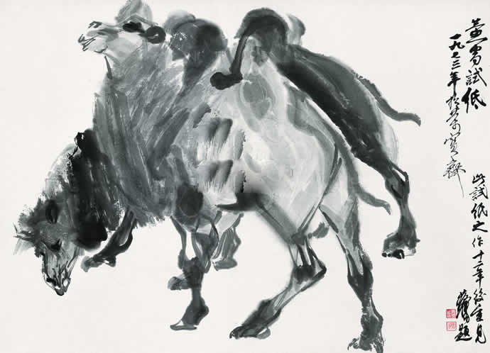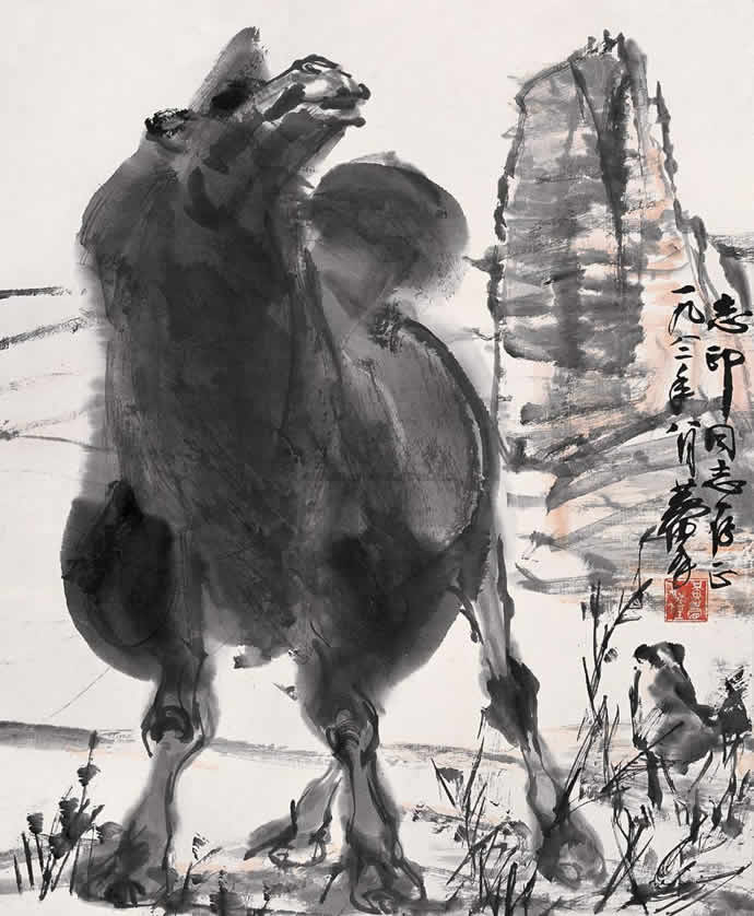 黄胄动物画除驴外,他还常画牛、马、骆驼等,造型准确生动。
