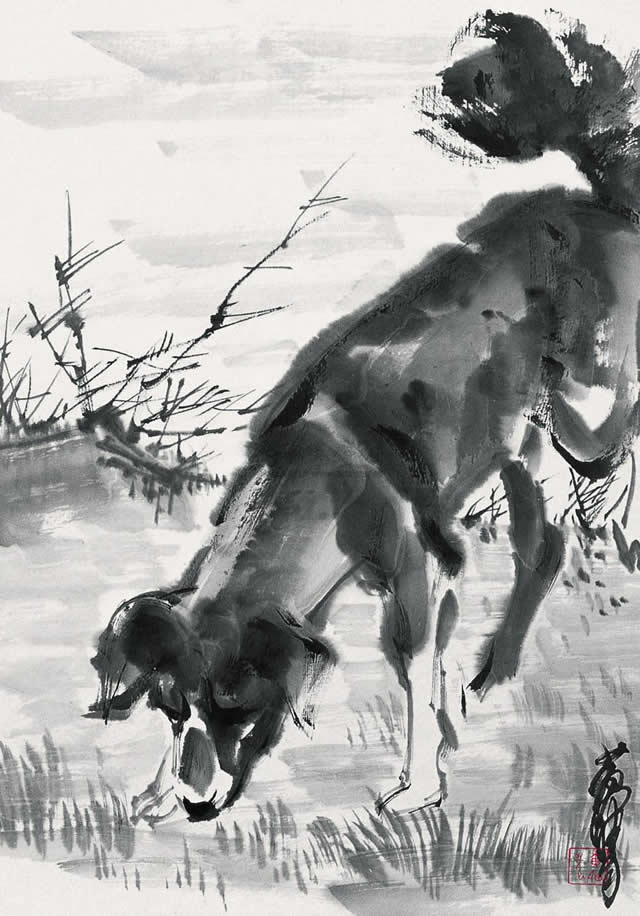 黄胄画狗欣赏: