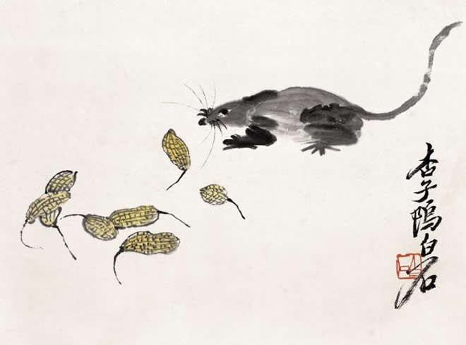 历代画家中画鼠的极为少见,只有元代葛淑英以画松鼠得名;至于晚清虚谷以后,以鼠入画的画家渐多,现代齐白石、于非厂、王雪涛都画有老鼠、松鼠题材作品问世。其中尤以齐白石笔下老鼠生趣盎然,隽雅鲜活,以其浓郁的生活气息带给大众无比的亲和力。