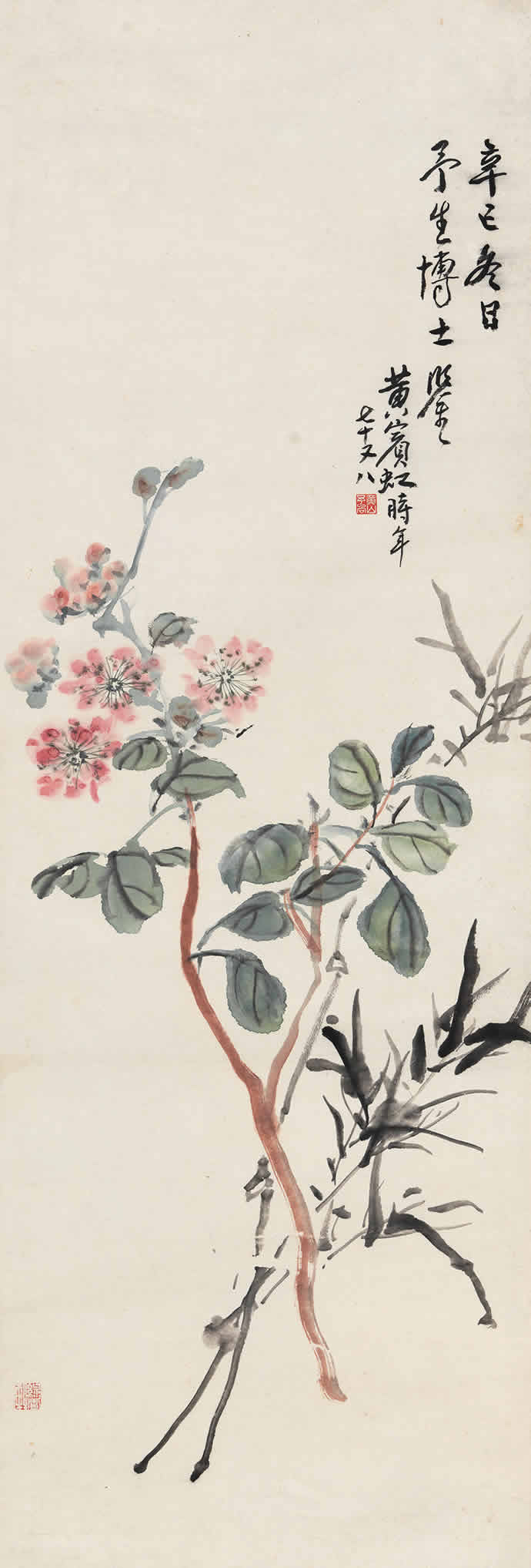 △1933年作 折枝花卉 67×35.5cm