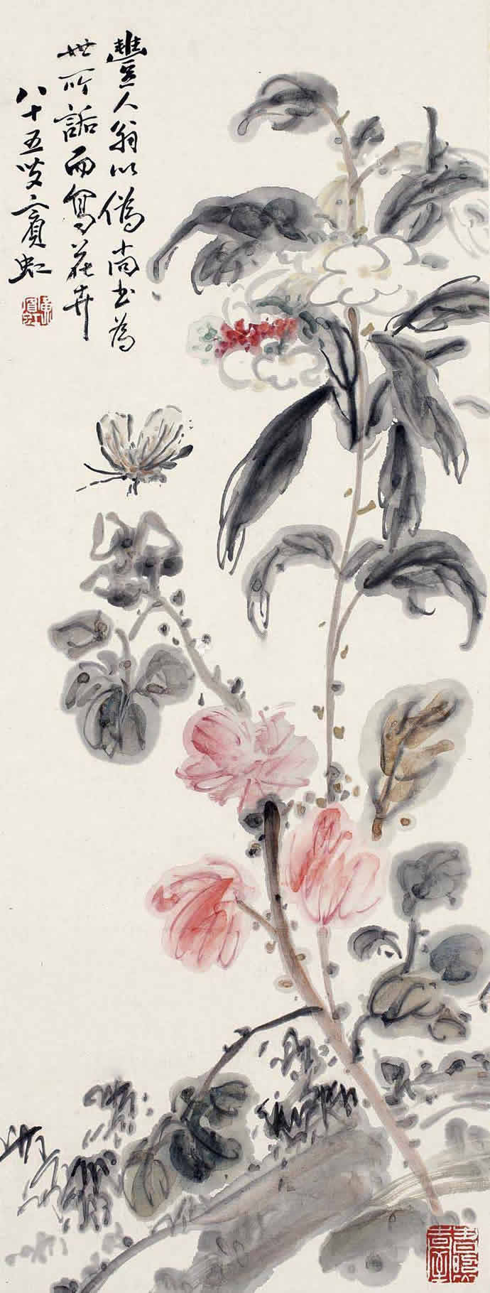 △1949年作 花卉 59.5×28cm