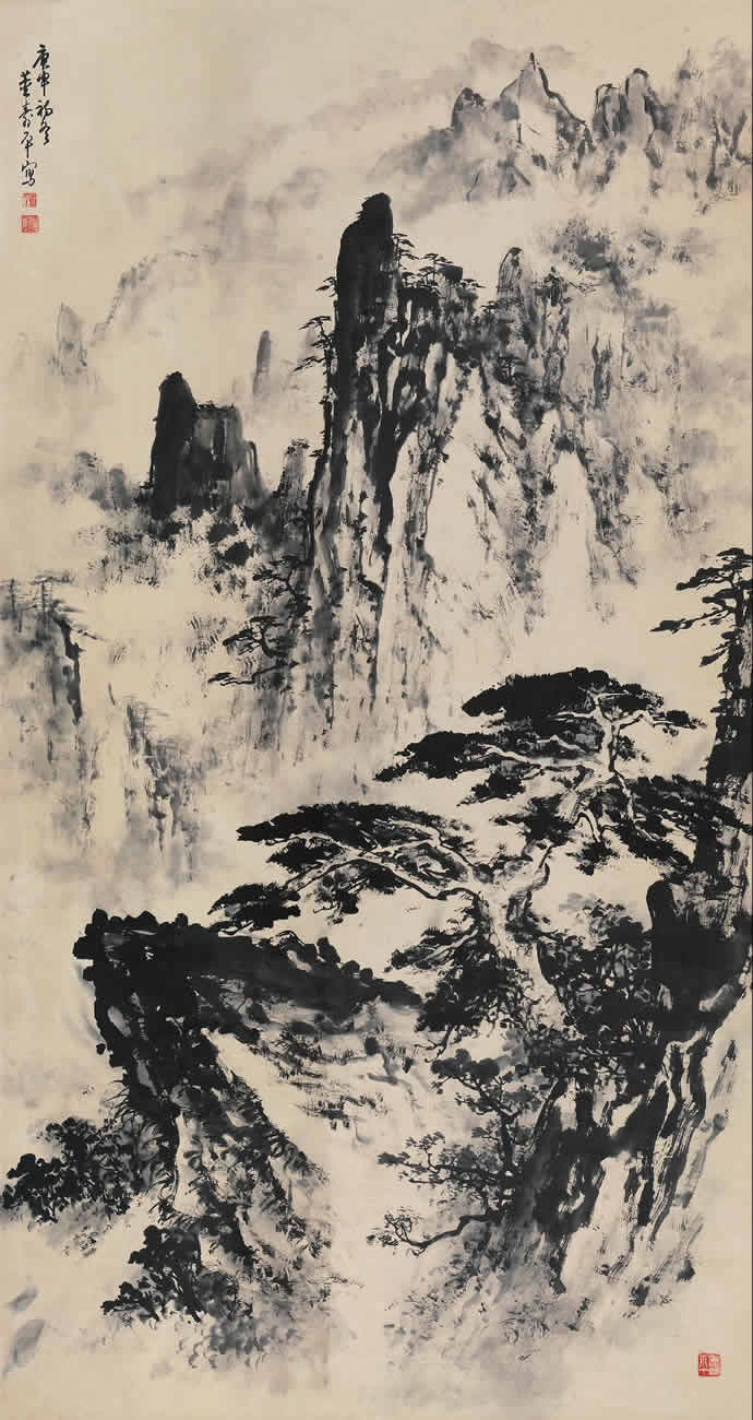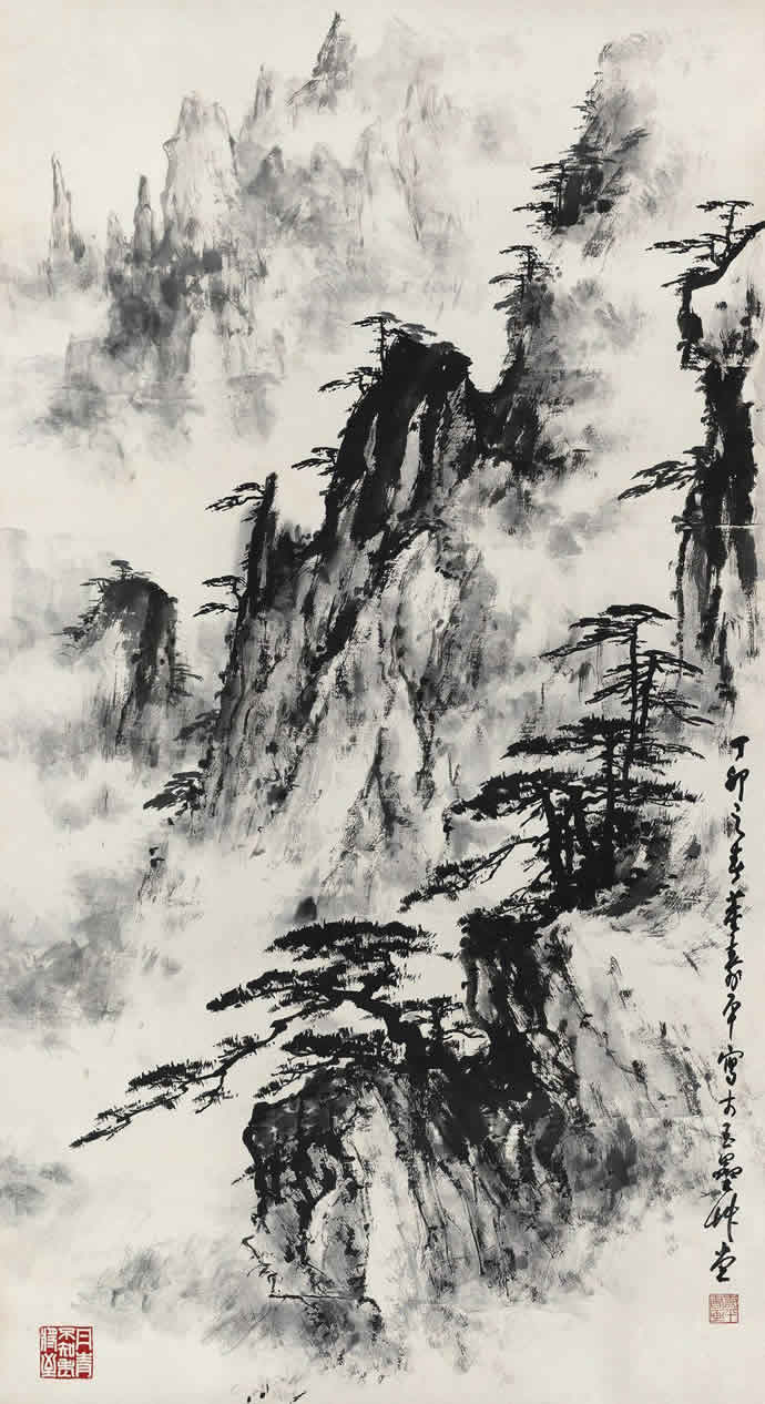 那么,董寿平拍卖超过300万的作品都有哪些?是梅花、墨竹、还是黄山风景?还是松树