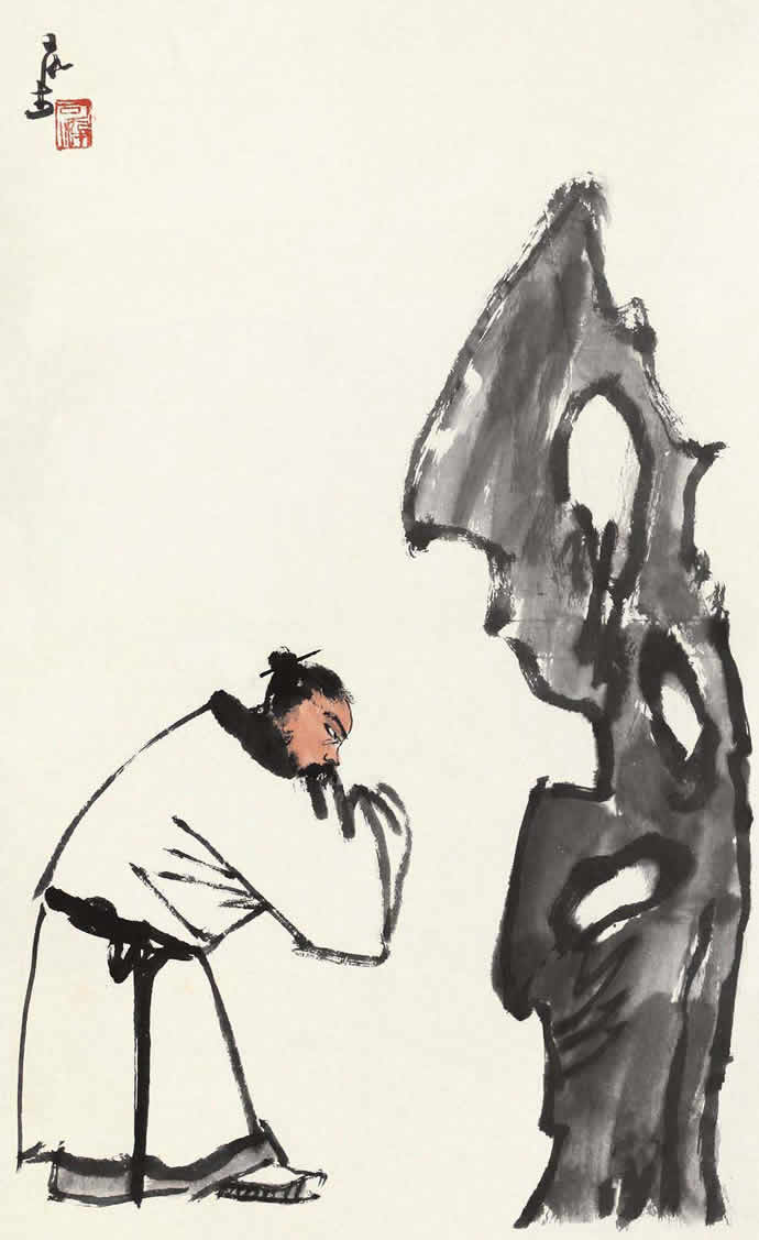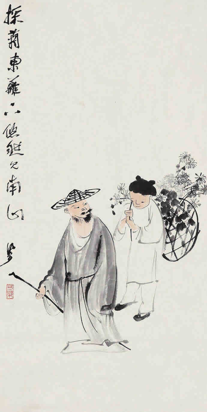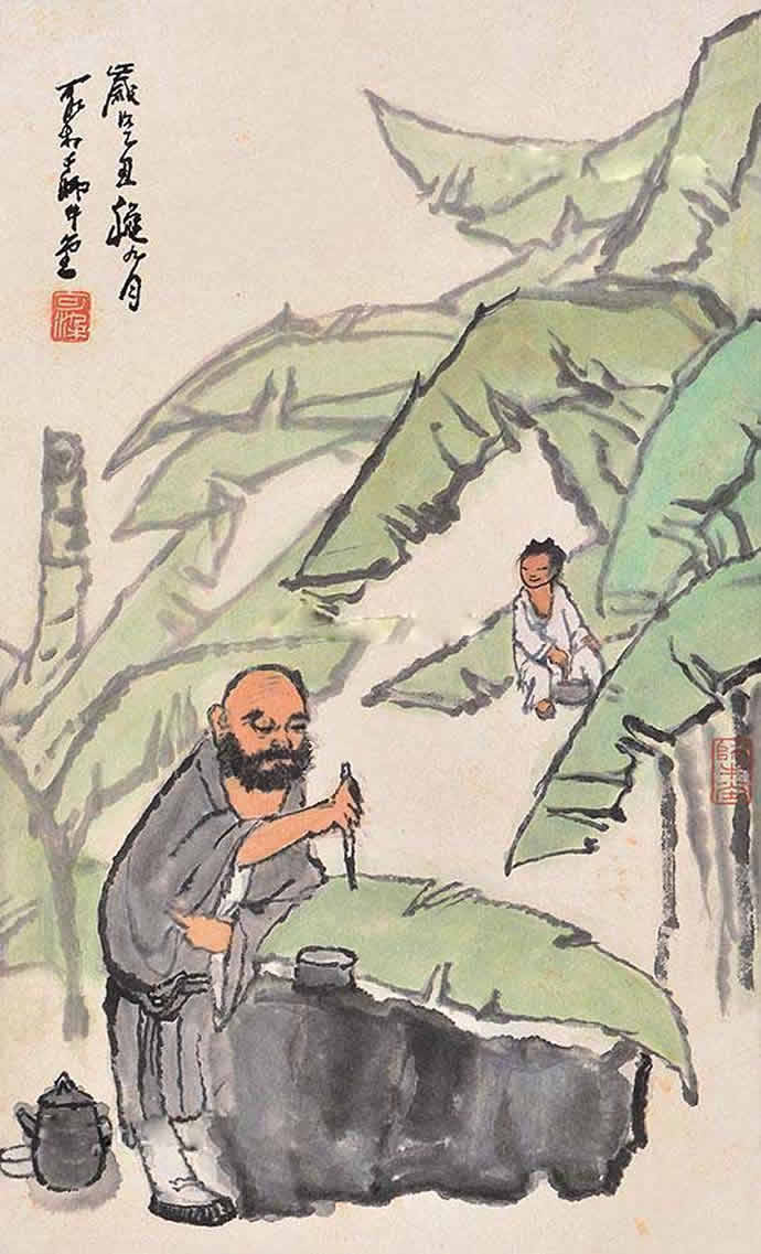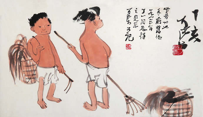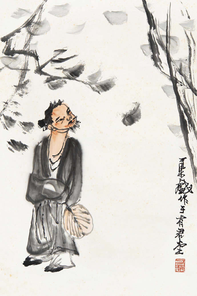 二十世纪四十年代,李可染的人物画创作主要是表现传统写意画风,并在此基础上展现出更成熟的个人风格,充分反映着李可染艺术个性中潇洒放逸的性情。李可染把其性格中细腻的幽默感、漫画式的表现方式及敏锐的文人特质融入到人物画创作中,使其作品具有机智、独特、隽永的品格,且这种风格特质一直保持到晚年的人物画创作中。