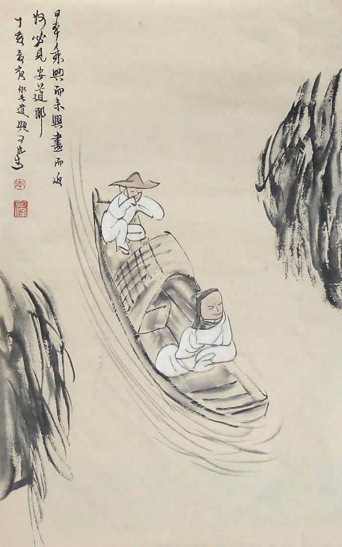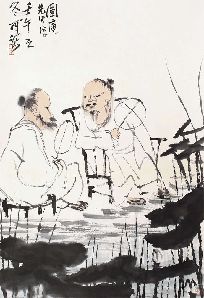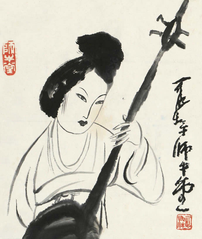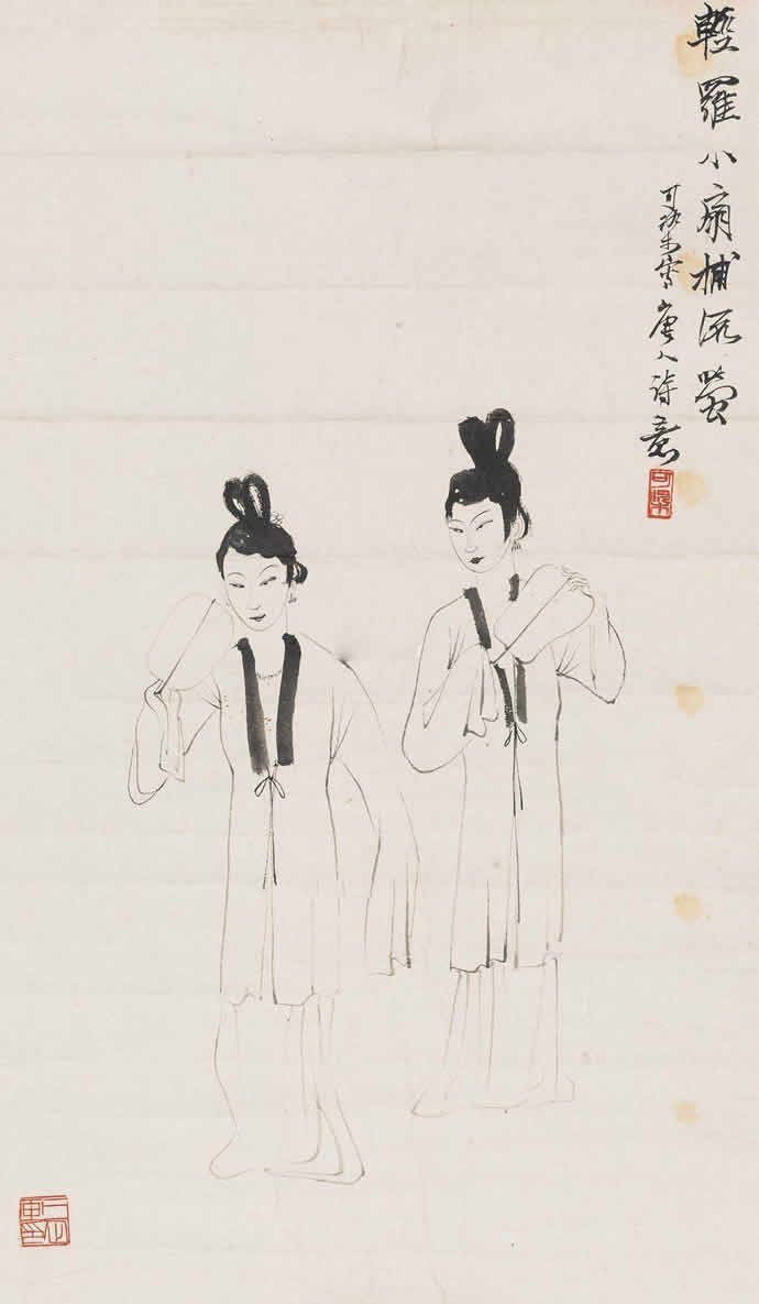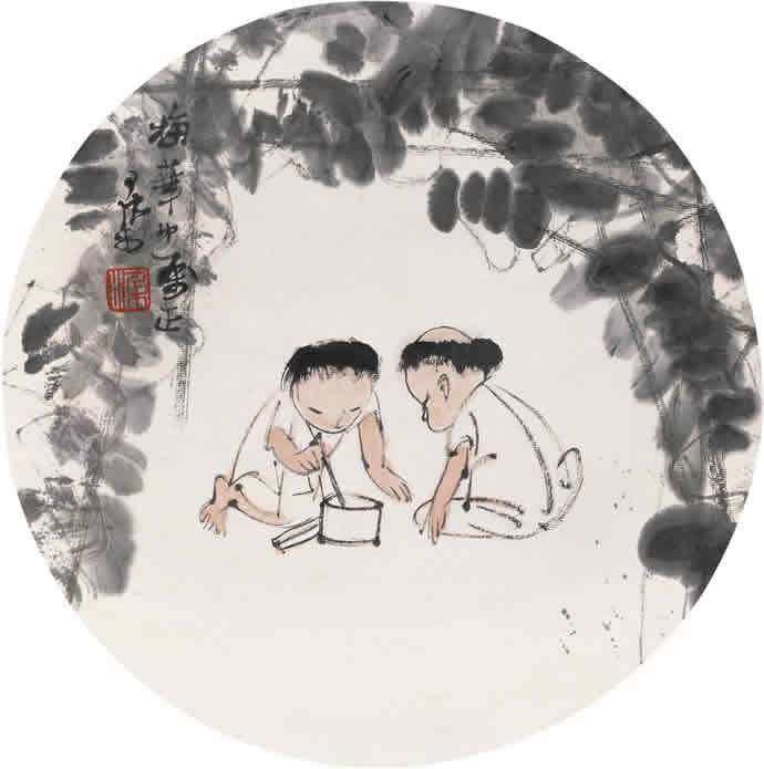 二十世纪四十年代,李可染的人物画创作主要是表现传统写意画风,并在此基础上展现出更成熟的个人风格,充分反映着李可染艺术个性中潇洒放逸的性情。李可染把其性格中细腻的幽默感、漫画式的表现方式及敏锐的文人特质融入到人物画创作中,使其作品具有机智、独特、隽永的品格,且这种风格特质一直保持到晚年的人物画创作中。