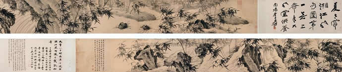 同年的北京保利春拍中,一幅夏昶《湘江竹石图》(见下图)手卷,录得5936万元成交价。
