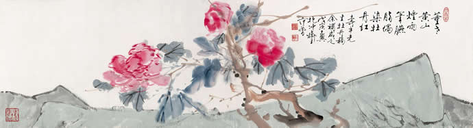 △董寿平 1998年作 胭脂偶染牡丹红 37×137.5cm