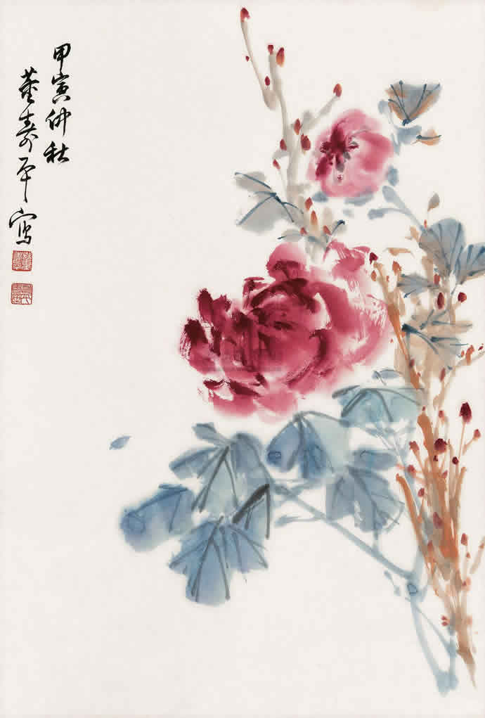 董寿平以画松、竹、梅、兰著称,晚年有黄山巨擘之称,以黄山为题材画山水,亦善书法。但董寿平偶尔亦画其它花卉作品,如牡丹等,下面让我们一起来欣赏董寿平笔下的牡丹。