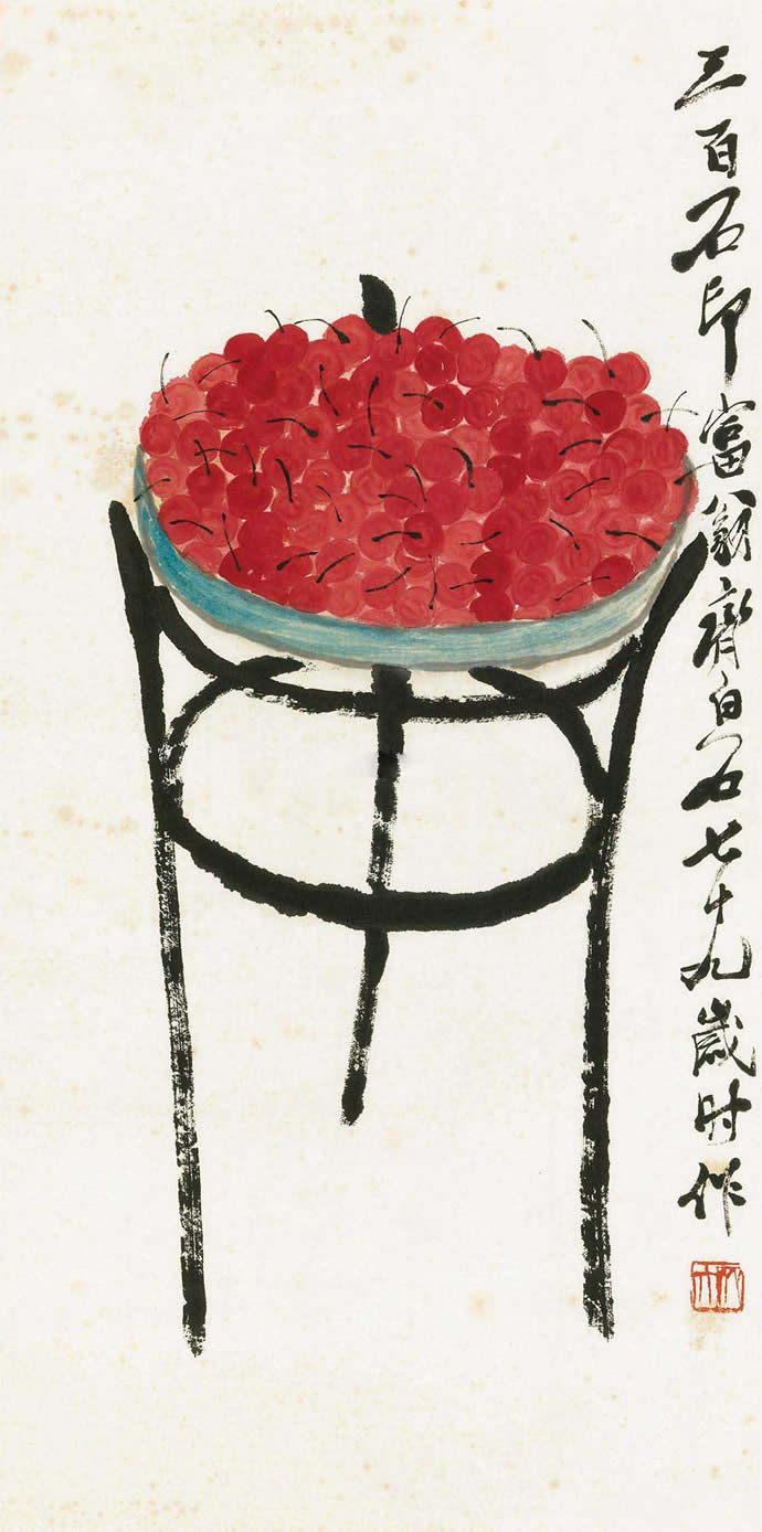 △齐白石 樱桃满盘香 34.5×34.5cm