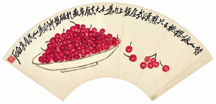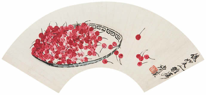 △齐白石 樱桃 扇面 18.8×53.3cm