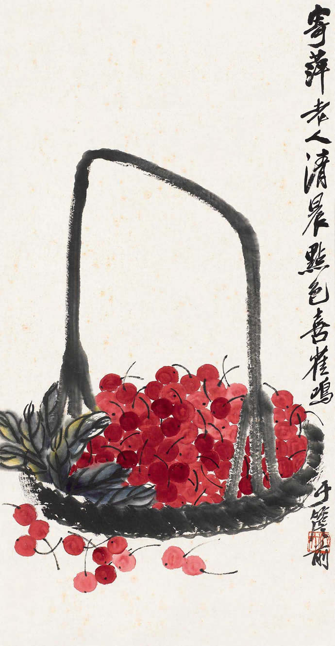 △齐白石1950年作《樱桃》 68.3×34.6cm 成交价2408万元