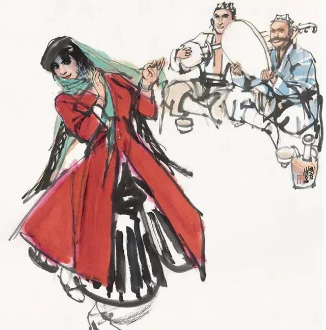 黄胄是由速写进入中国画坛的,并且以新疆人物速写闻名于中国人物画坛,而史国良以西藏人物画闻名画坛,他的反映藏民宗教的作品《刻经》荣获第23届蒙特卡罗国际艺术大奖赛“联合国科教文组织大奖”,这也是绘画界的“奥斯卡奖”,我们可以从史国良的诸多作品中看到线对人物造型的影响,这显然是与黄胄对他的速写训练分不开的。