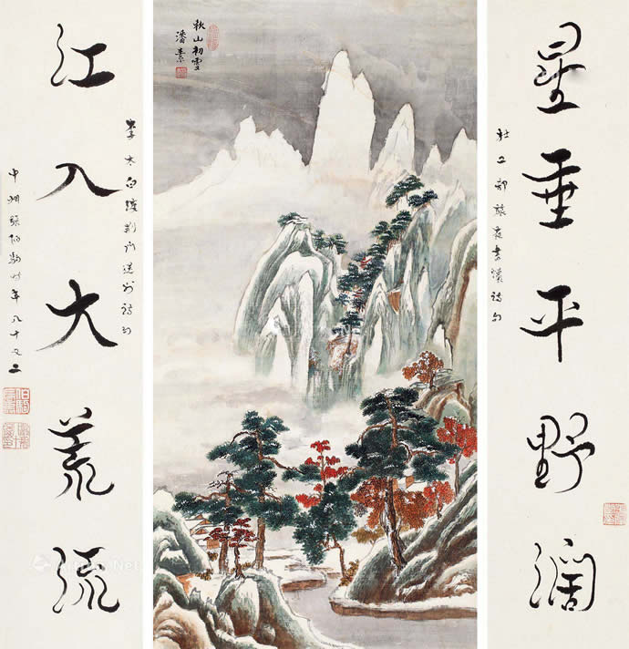 张伯驹与潘素同样成就一段艺坛佳话:一个是才华横溢的贵公子——张伯驹是著名的民国四公子之一,虽出身官宦世家,却不喜军政、厌恶功名,是个只谈风月的雅士,生得玉树临风、眉眼风流,诗书戏曲、古玩丹青无一不晓;一个是天赋异禀的女画家——在张伯驹引荐下,潘素21岁便拜名师学画,后来连张大千都曾赞她的画:“神韵高古,直逼唐人,谓为杨升可也,非五代以后所能望其项背”。他们常常一人作画,一人题字。她的画,素雅空灵中透着温和宁静;他的字,潇洒飘逸中显露出闲散风雅。
