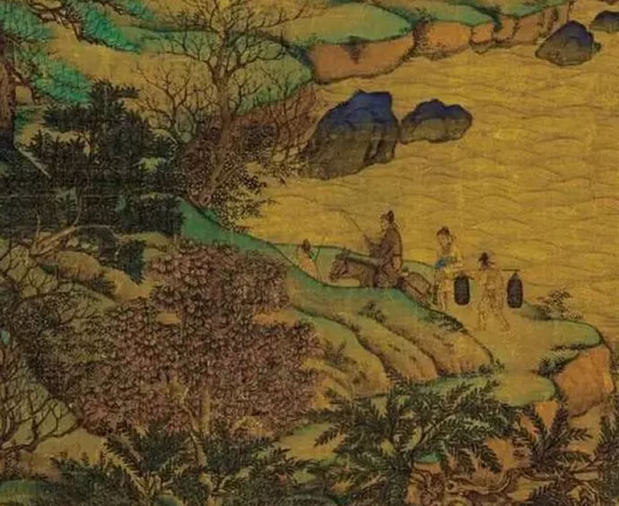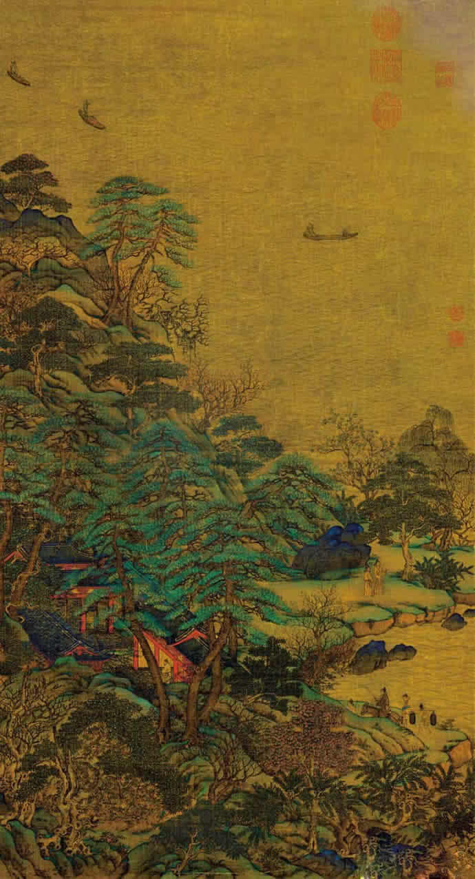 “金碧山水”派起于展子虔,又在李思训,李昭道父子处得以发扬光大,达到了顶峰。