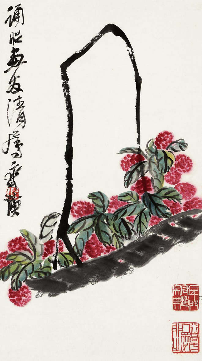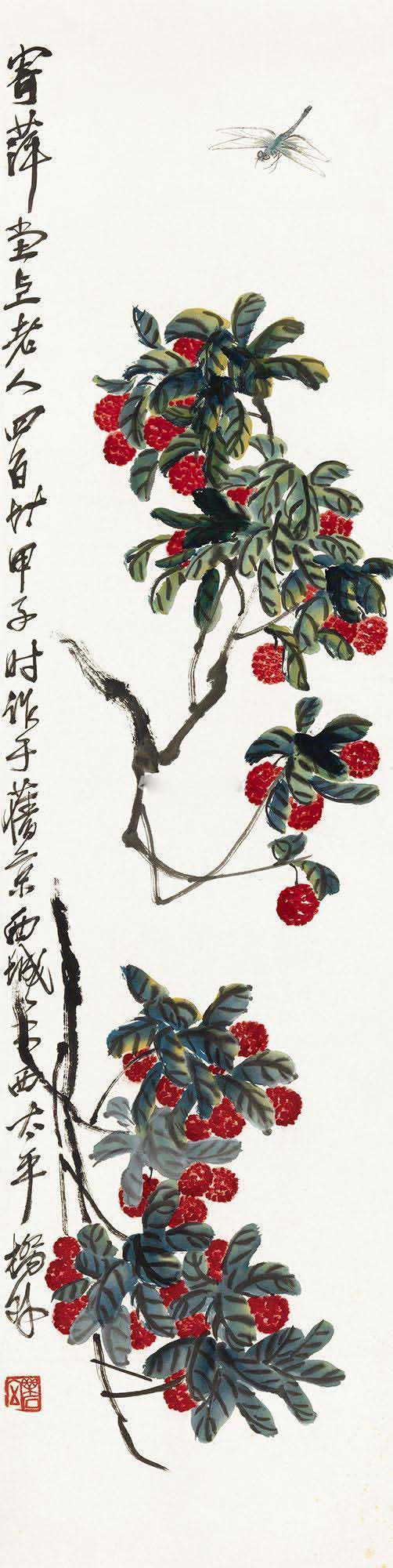 6、 齐白石荔枝图丨425.60万丨178×47.1cm丨拍卖时间:2011-04-22