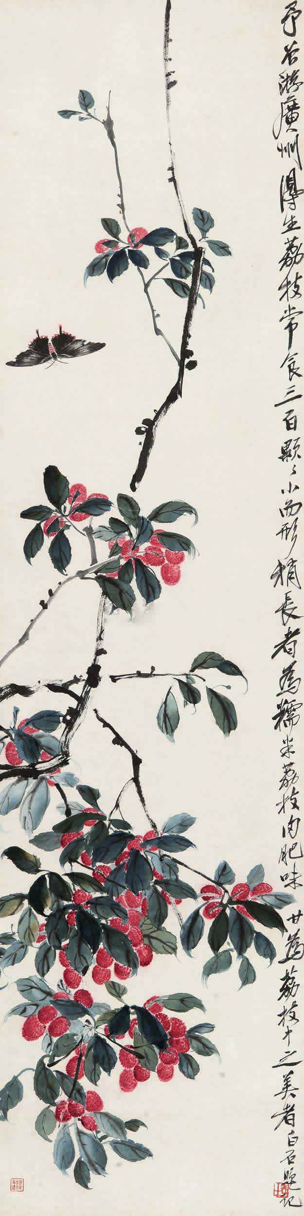 4、齐白石荔枝蝴蝶丨500.00万丨160.5×40cm丨拍卖时间:2012-05-17