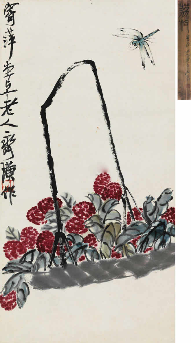 8、齐白石荔枝蜻蜓丨333.50万丨66×33.5cm丨拍卖时间:2010-04-06