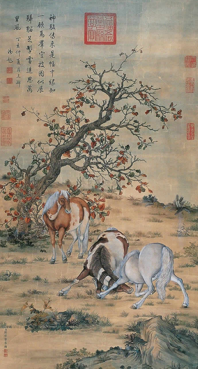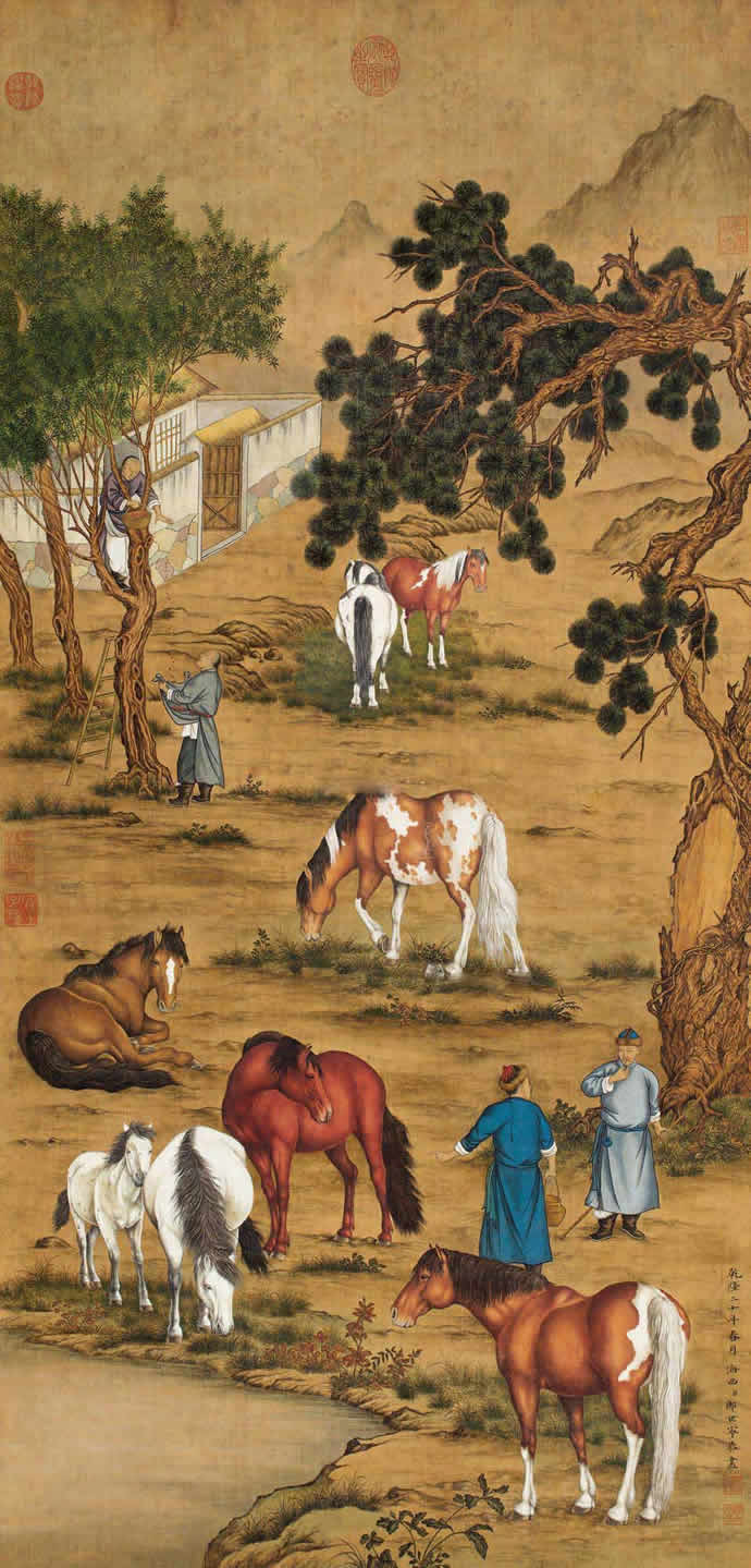 10、郎世宁 1739年作 八骏图 中堂 设色绢本