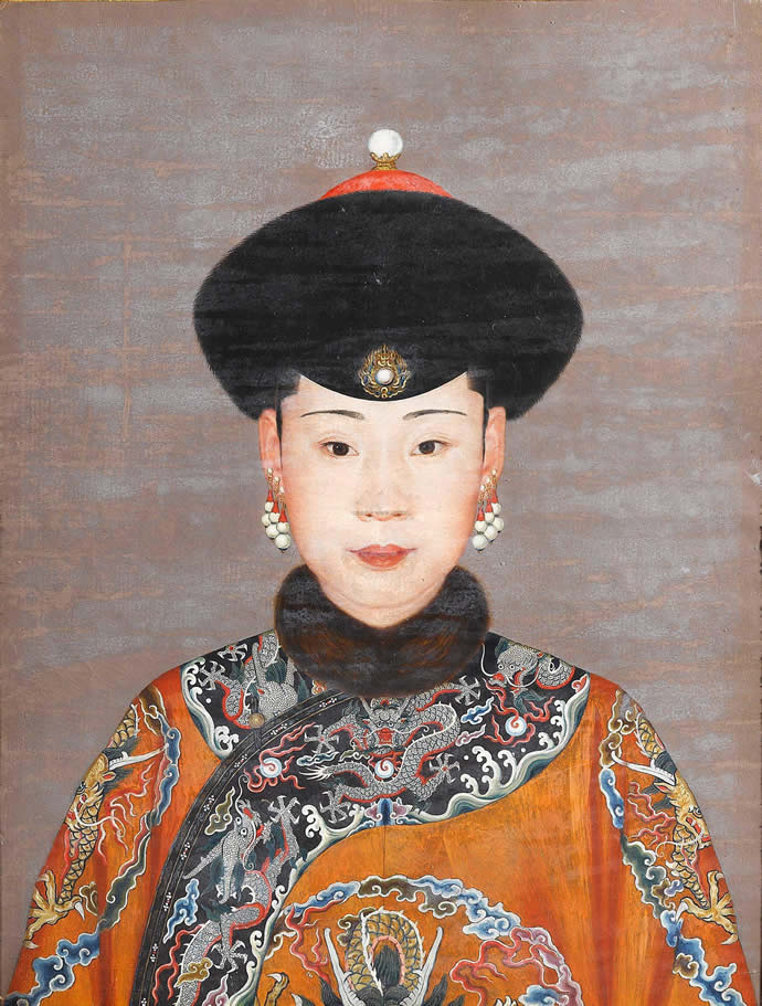 2、清乾隆 《纯惠皇贵妃朝服像》 镜框 设色绢本