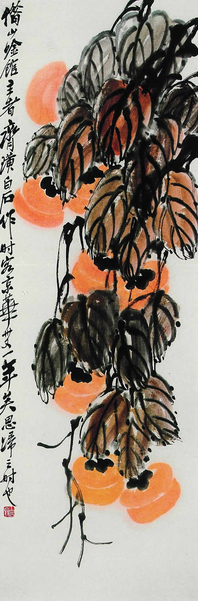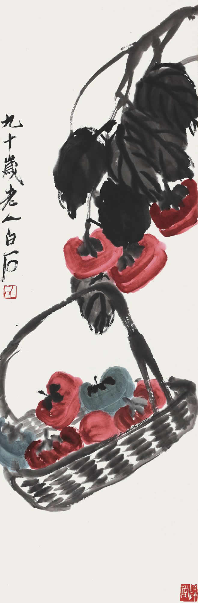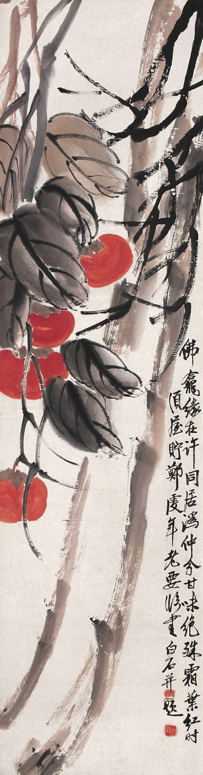 △齐白石 客京华卅又一年(1948)年作 红柿图 103.5×34.5cm