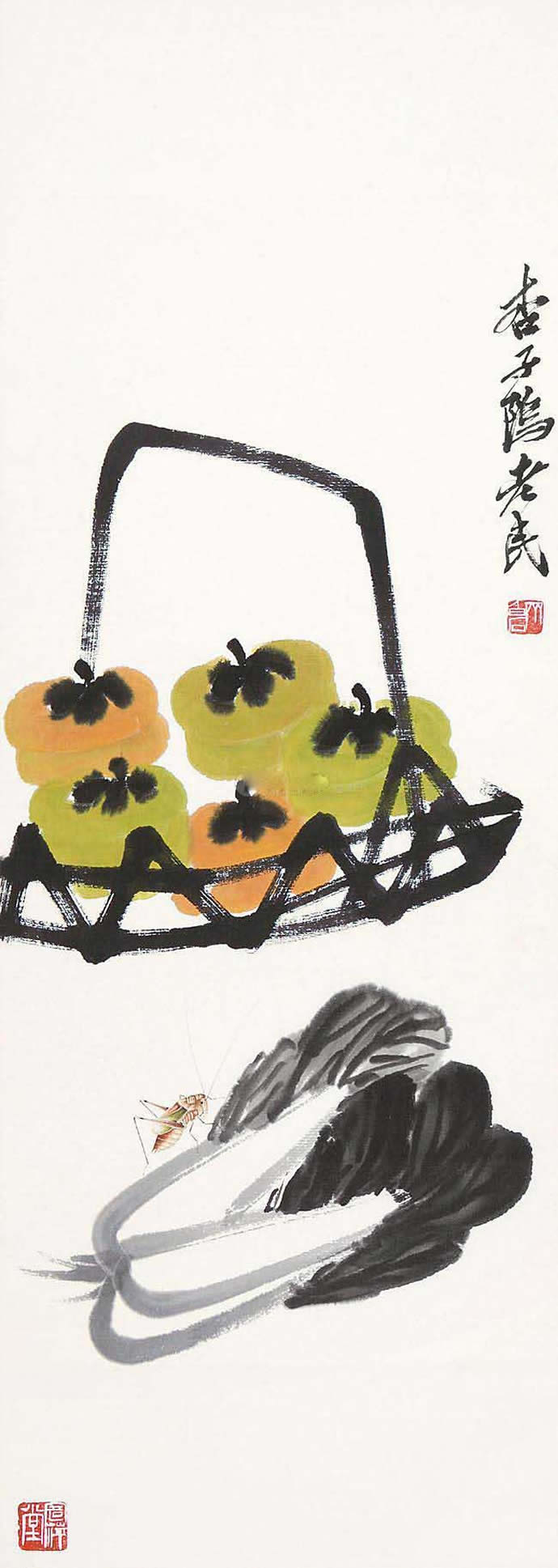 △齐白石 柿柿如意 103×34cm