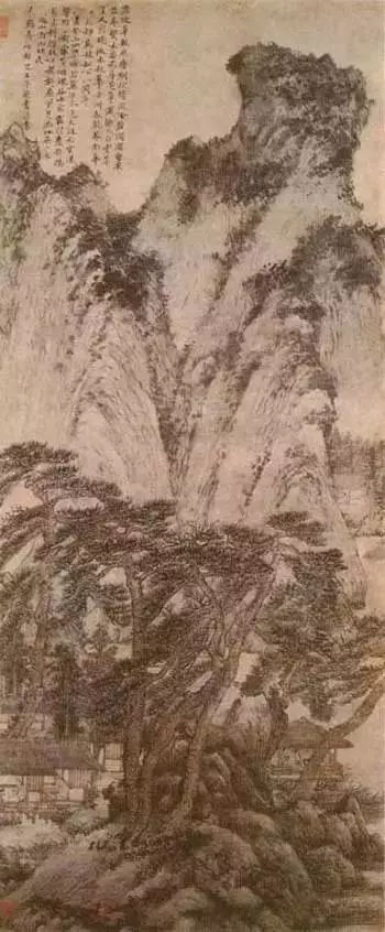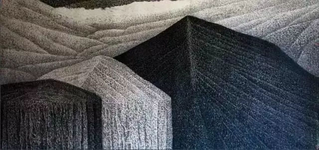 这是现代山水画家陆俨少所创造。以大块水墨作为皴法运用,收到了峰峦厚重,云气蒸腾,水墨淋漓,大气磅酵的艺术效果。