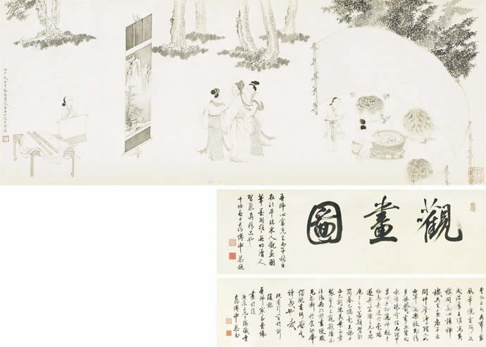 · 傅儒 1936年作 观画图 手卷 纸本