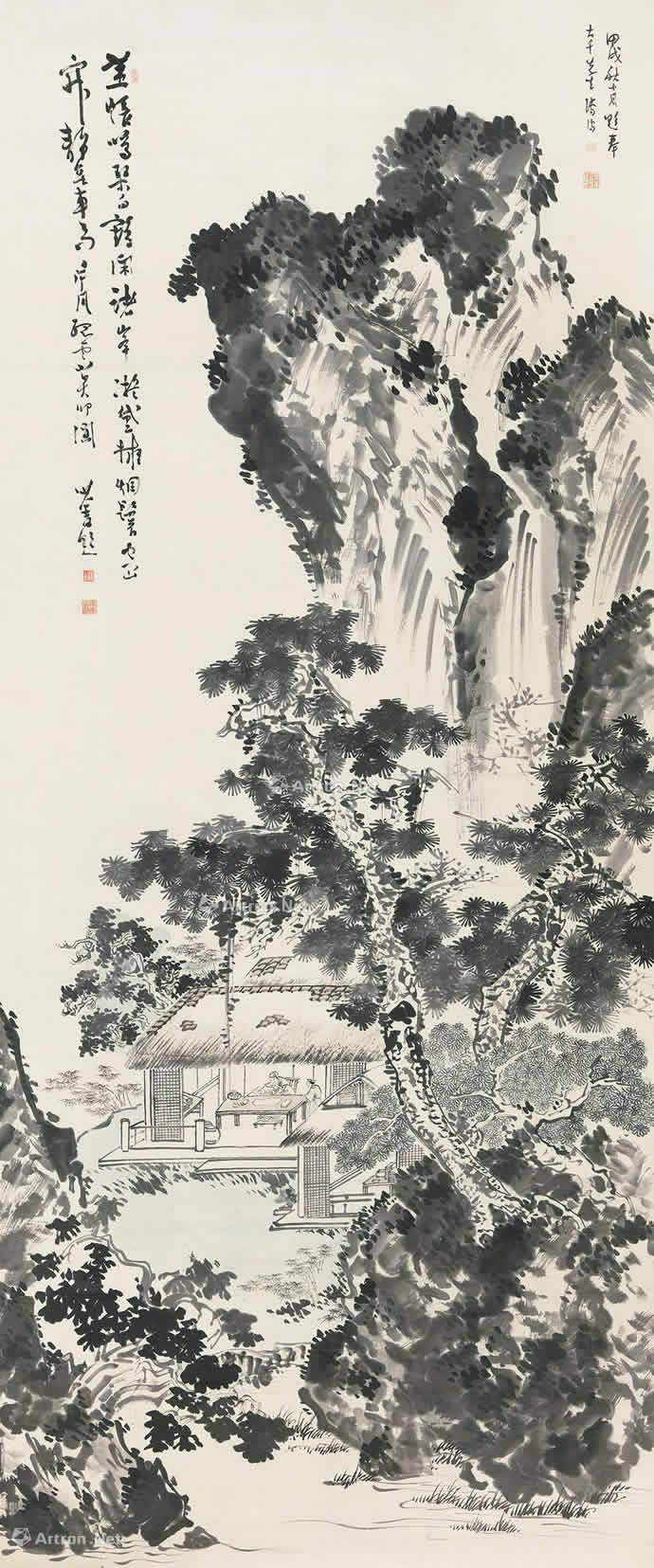 · 傅儒 山居著书图 立轴 水墨纸本
