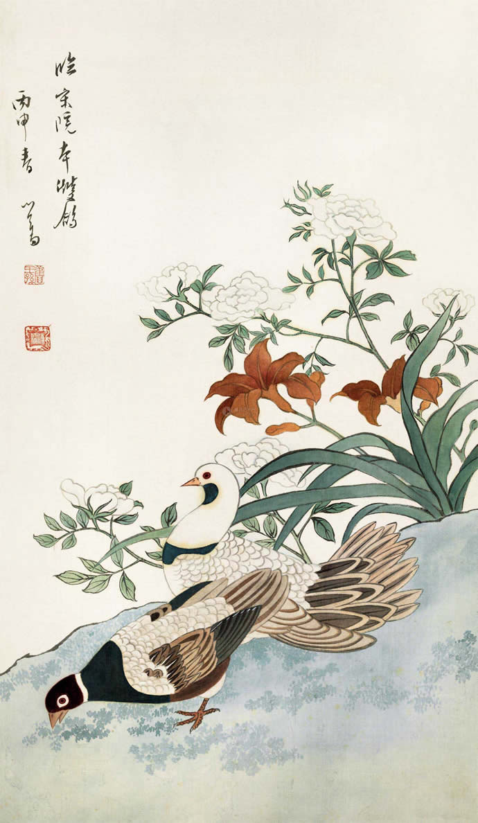 · 傅儒 1956年作 双鸽 镜心 绢本