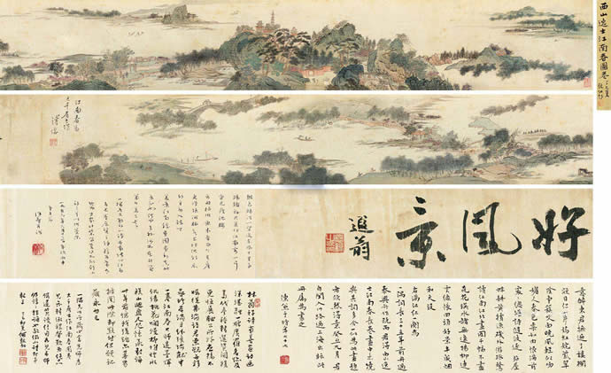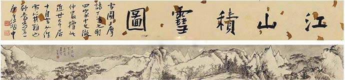 成交价格:517.50万丨尺寸:引首27×99cm;本幅27×388cm丨拍卖时间: 2017-06-03