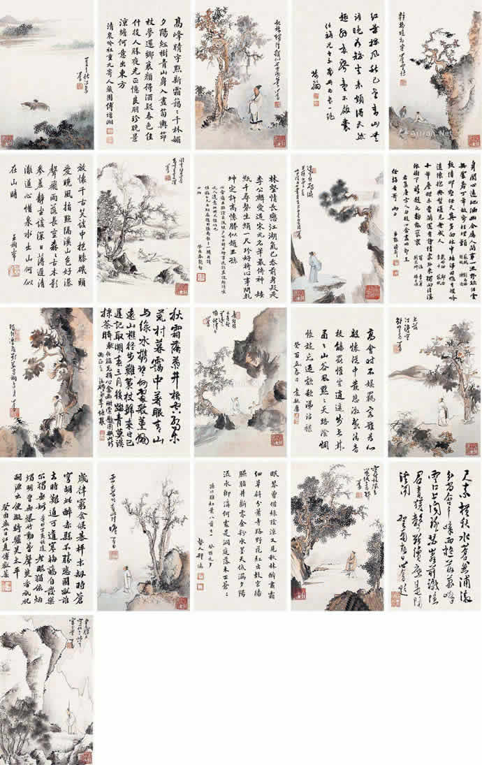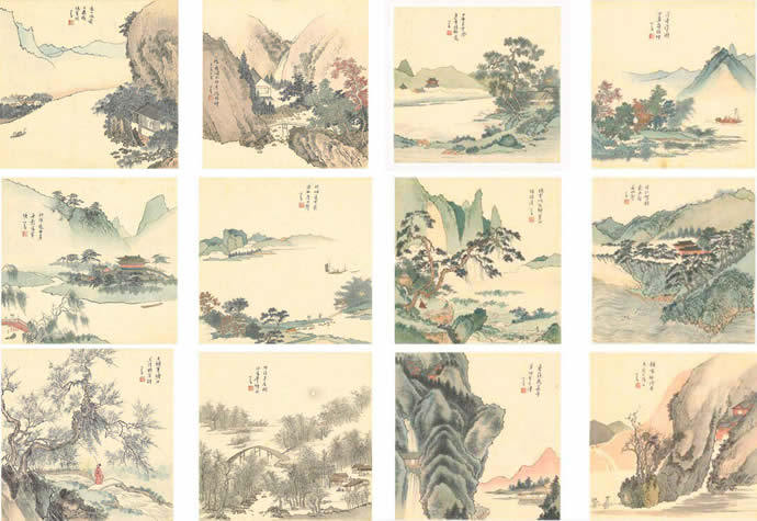 · 傅儒 山水人物 册页 (十一开) 设色纸本