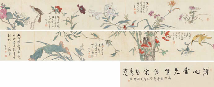 · 傅儒 仿宋花鸟卷 手卷 纸本