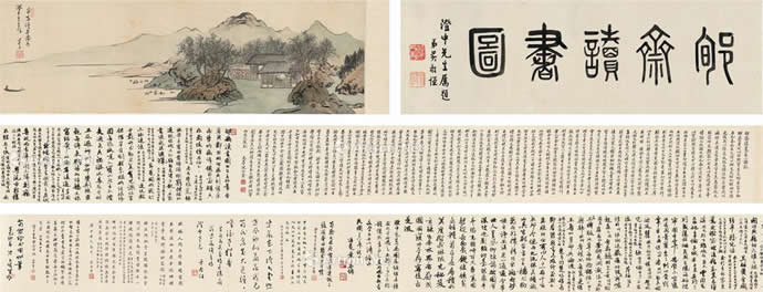 · 傅儒 为陈清华作 荀斋读书图卷 手卷 设色绢本