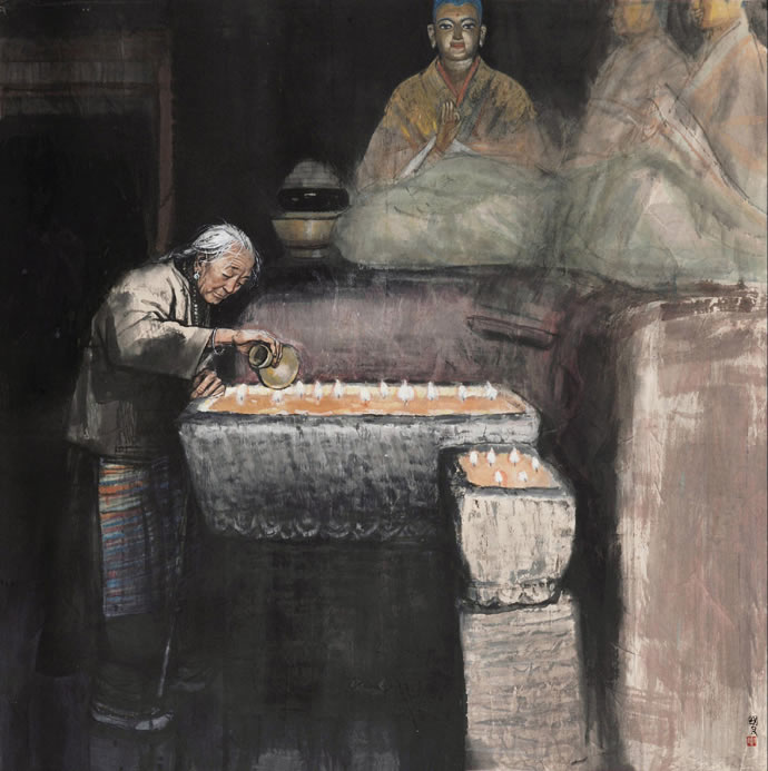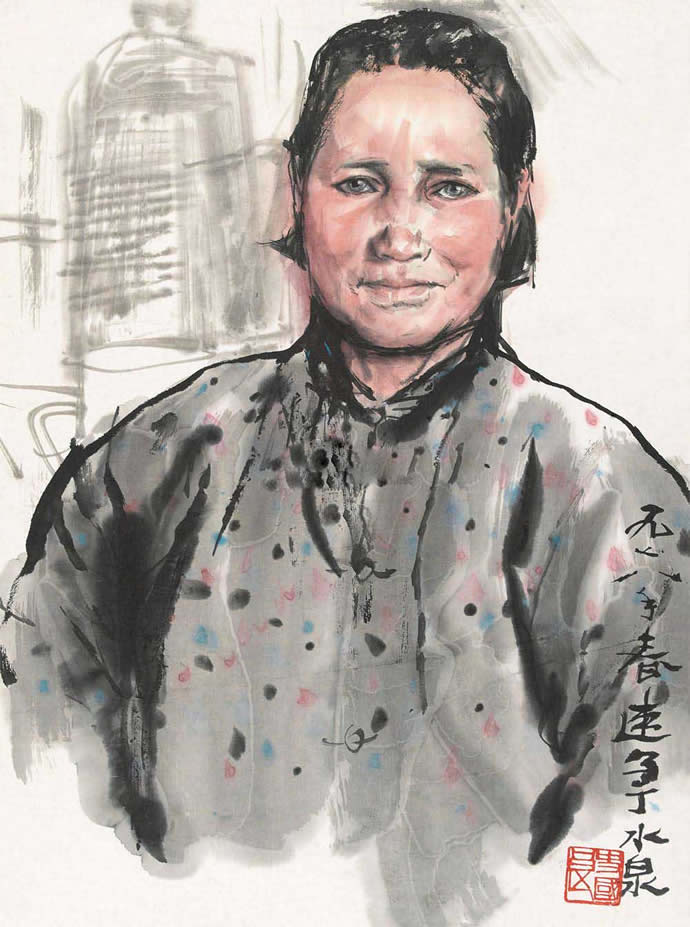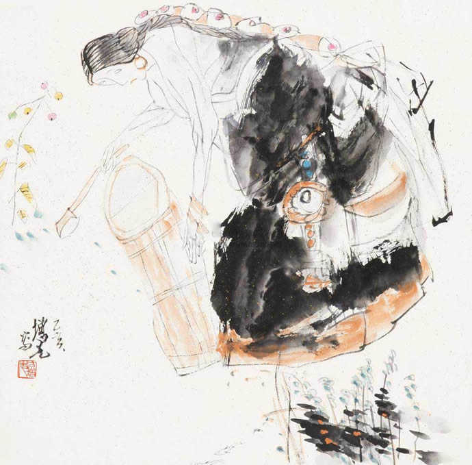 方增先(b.1931),浙江兰溪人,20世纪后半叶现实主义中国人物画创作的代表人物之一,中国画坛具有影响力的“新浙派人物画”的奠基人与推动者。浙江杭州国立艺术专科学校毕业。曾任第五届全国人大代表、上海美术馆馆长、中国美术学院荣誉教授、上海市美术家协会主席、中国国家画院中国画院院长。