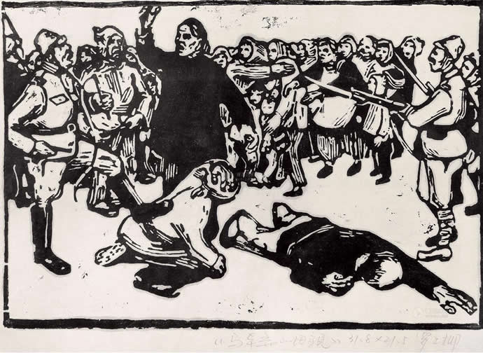 △罗工柳 马本斋的母亲 木版