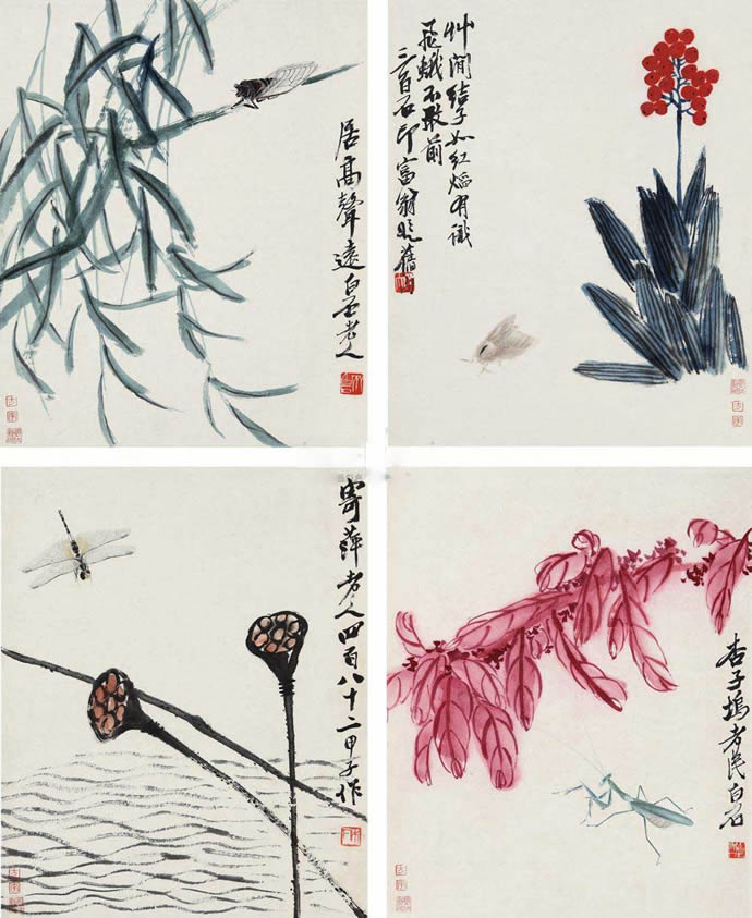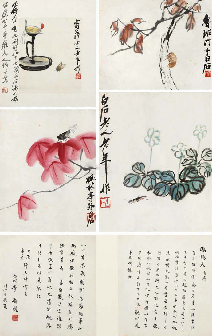 5、齐白石 花卉草虫四开册 册页 (四开) 设色纸本