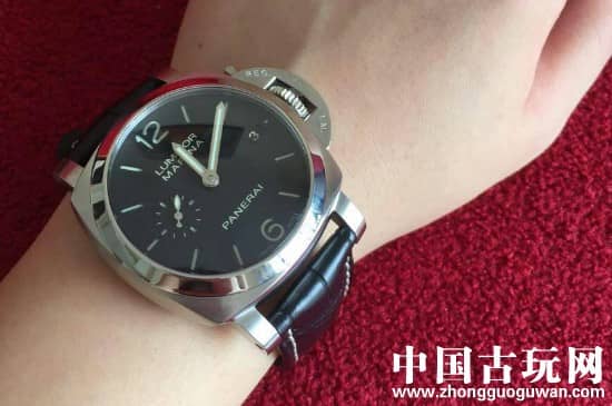 沛纳海LUMINOR 1950系列PAM 00305腕表也是比较受欢迎的大表盘手表,这款手表的直径为47毫米,其表壳材质是磨砂钛金制作的,同时还配置了夜光小时标示的黑色表盘。