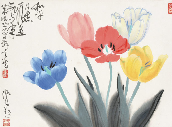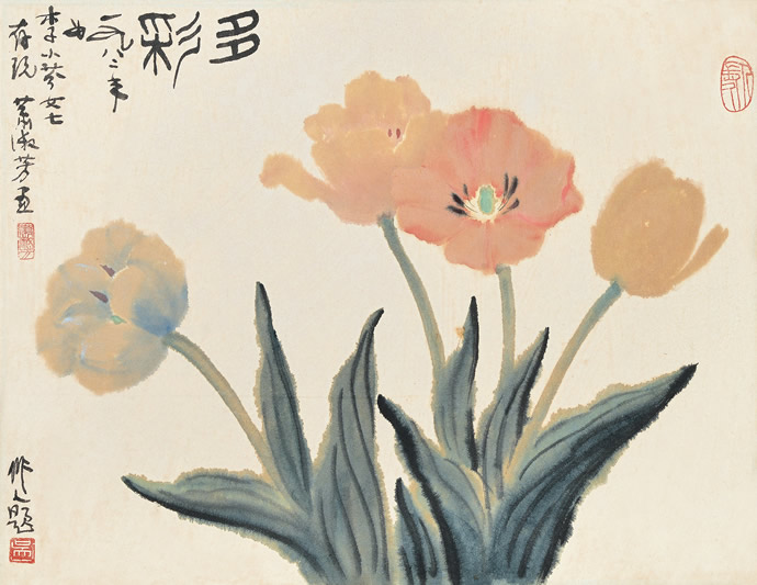 △吴作人萧淑芳 1978年作 五彩郁金香