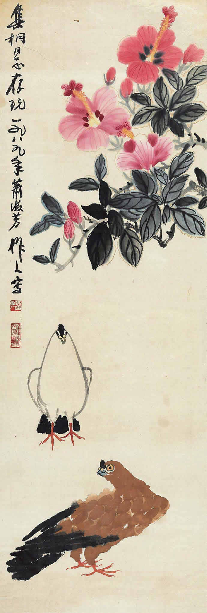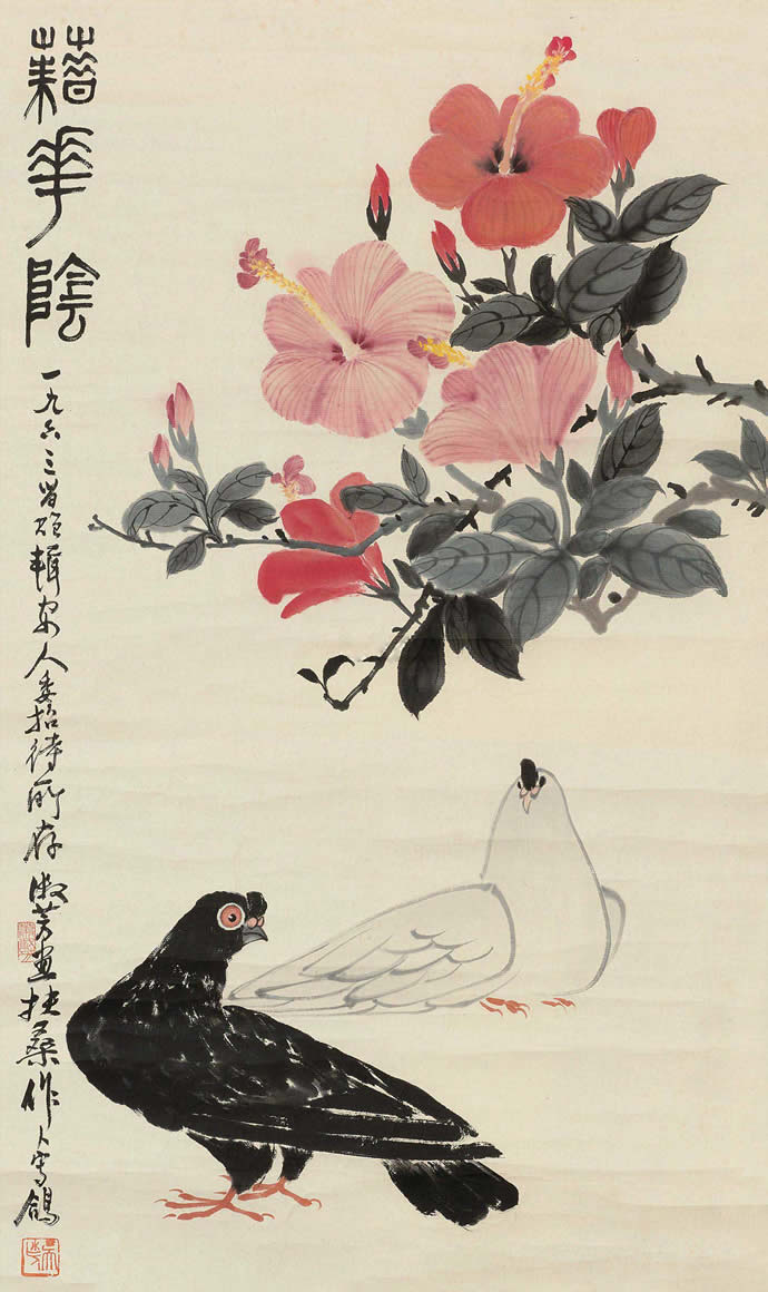 △吴作人萧淑芳合作 花鸟
